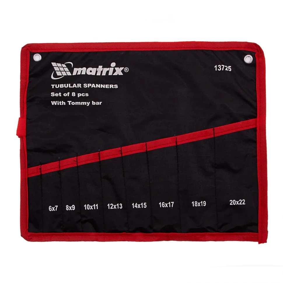 Набор трубчатых торцевых ключей Matrix 13725 состоит из 9 предметов и будет полезен профессиональным и частным мастерам для работы с крепежом, имеющим шестигранный профиль. Трубчатая конструкция облегчает монтаж/демонтаж в труднодоступных местах. В комплекте имеется вороток для вращения ключей.ПреимуществаПрочность — ключи выполнены из качественной углеродистой стали 45.Коррозионная стойкость — хромоникелевое покрытие защищает инструменты от воздействия влаги.Быстрый поиск нужного инструмента — в набор входит 6 ключей с четкой маркировкой с обозначением типоразмеров.Удобное хранение и транспортировка — инструменты упакованы в сумку-скрутку с индивидуальными отделениями.