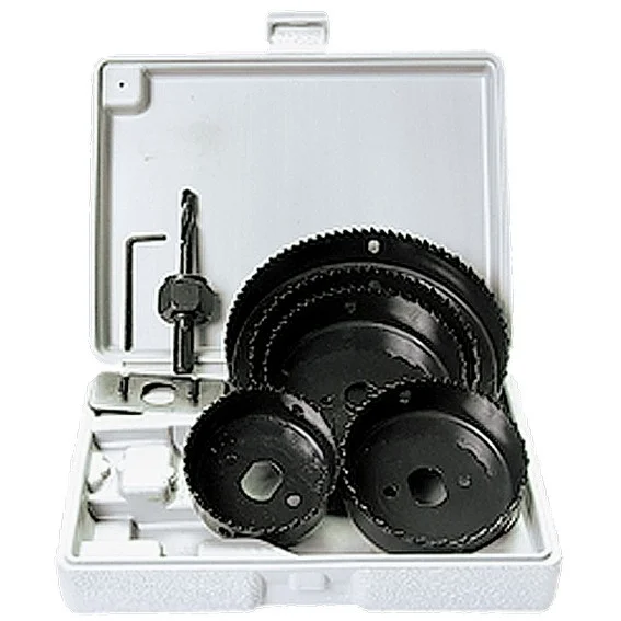 Набор кольцевых пил по дереву Matrix 704715 состоит из 8 предметов и включает 5 коронок диаметром 64-127 мм. Они предназначены для вырезания круглых отверстий глубиной до 27 мм в дереве, фанере, ДСП, ДВП, а также гипсокартоне и пластике. Пилы устанавливаются на электродрели. В комплект входит проставка для защиты коронки от проворота, что повышает скорость и качество сверления. Набор будет полезен при установке выключателей, электророзеток и элементов освещения, а также при прокладке трубопроводов.ПреимуществаКольцевые пилы изготовлены из углеродистой стали, устойчивой к повреждениям, поэтому подходят для длительного использования.Зубья коронок разведены, что облегчает удаление стружки и увеличивает скорость сверления.Направляющее сверло упрощает центровку пилы, что позволяет получать отверстия правильной формы.В комплект входит шестигранный ключ 2,5 мм, позволяющий надежно зафиксировать сверло в державке.Набор поставляется в удобном пластиковом кейсе с ложементами, что облегчает его хранение и транспортировку.