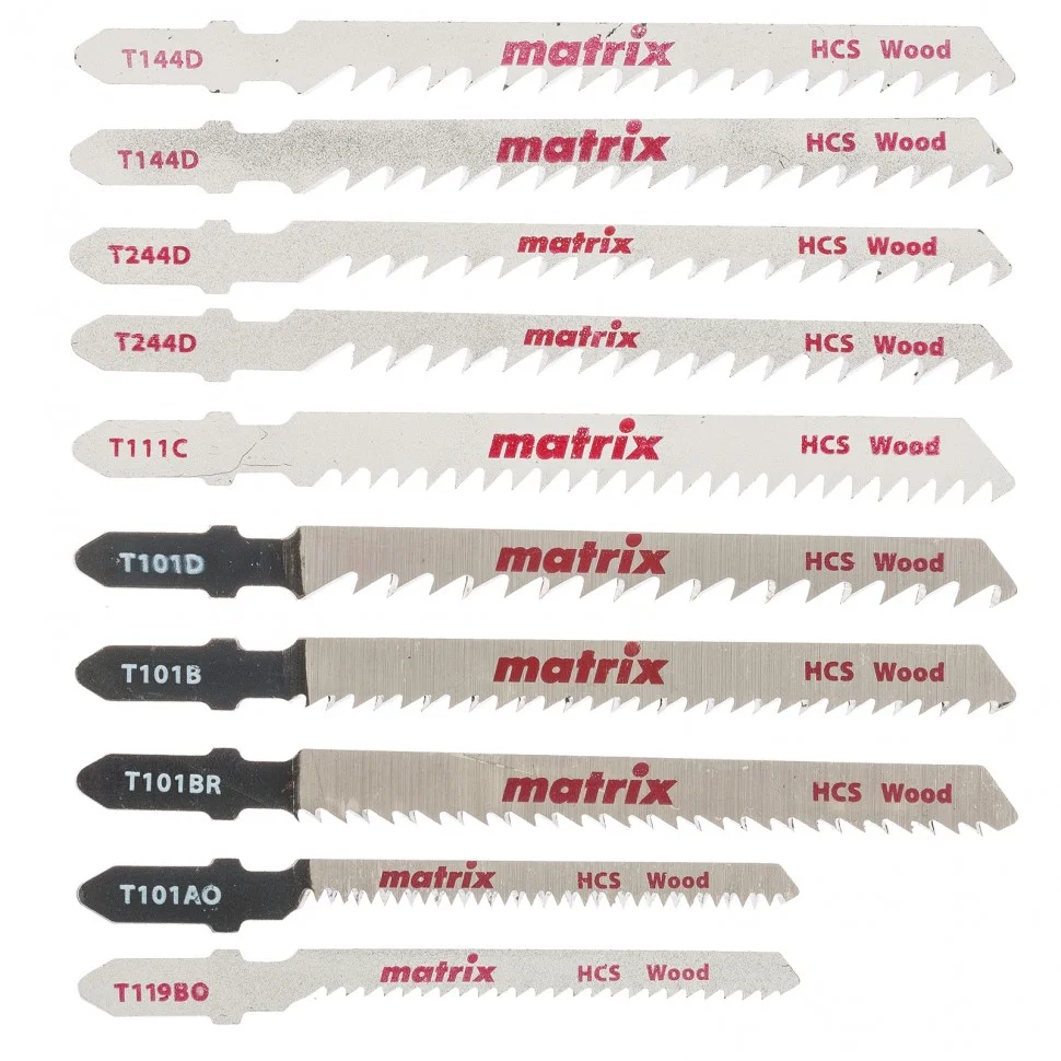 Набор полотен для электролобзика Matrix T-SET1007 78249 состоит из 10 шт. и предназначен для работ по дереву. В него входят пилки как для грубого быстрого распила, так и для точного чистого реза. Пилки совместимы с электролобзиками, рассчитанными на оснастку с Т-образным хвостовиком. Набор позволяет решать широкий спектр профессиональных и бытовых задач.ПреимуществаПолотна изготовлены из высококачественной японской стали SK-5, поэтому отличаются прочностью и устойчивостью к истиранию.Зубья имеют твердость 48-52 HRС, за счет чего долго сохраняют режущую способность.Полотно с обратным зубом позволяет распиливать ламинат и ДСП с лицевой стороны без задиров и сколов.Пилки для криволинейного пропила обеспечивают чистый и ровный фигурный рез.Все элементы набора изготовлены с применением современных технологий и прошли строгий контроль качества, что гарантирует их надежность.