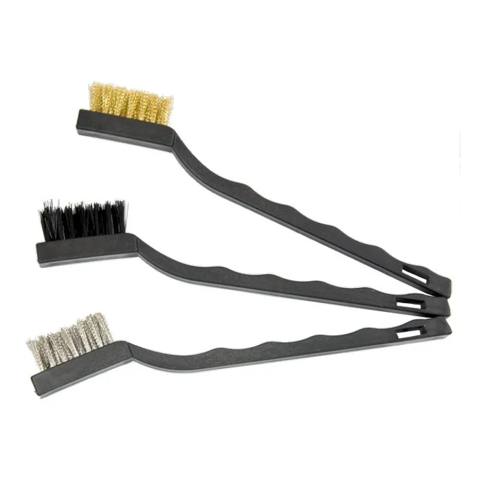 Набор малых щеток Matrix 74860 с пластмассовыми ручками предназначен для различных видов обработки — стальные удаляют ржавчину, загрязнения и старую краску с металлических и других поверхностей, а нейлоновая браширует и мягко очищает деревянные изделия. Щетки имеют удлиненные ручки, а длина рабочих частей составляет 34 мм, поэтому они идеально подходят для работы на небольших участках и в труднодоступных местах. Набор пригодится во время ремонта, кузовных работ, а также будет полезен в быту.ПреимуществаВитая стальная проволока устойчива к деформациям, поэтому щетки обладают высоким ресурсом работоспособности.Щетина с латунированным покрытием устойчива к коррозии, что повышает срок ее службы.Проволока надежно закреплена в основании и не выпадает во время работы.Корпуса щеток изготовлены из прочного пластика, поэтому они не рассыхаются и служат долго.Эргономичные пластиковые рукоятки удобно ложатся в руку, обеспечивая комфорт во время работы.Набор поставляется в блистере с подвесом, удобном для размещения на стенде.