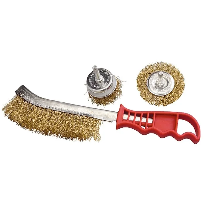 Набор щеток Matrix 74484 состоит из 3 щеток: плоской 65 мм, чашки 50 мм со шпильками 6 мм для дрели и ручной металлической. С их помощью можно удалить тонкий слой ржавчины, краски, лака, а также убрать загрязнения. Насадкой в форме чашки удобно обрабатывать ровные поверхности, а плоской работать в пазах и углах. Ручная щетка пригодится для небольших площадей, когда применение электроинструментов нецелесообразно. Рекомендовано использование инструмента при оборотах до 4500 об/мин.ПреимуществаЗа счет высококачественной стальной проволоки щетки обладают высоким ресурсом.Универсальные щетки справляются с обработкой любых твердых материалов: древесины, металла, пластика и т.д.Благодаря витой щетине изделия обрабатывают поверхности в щадящем режиме.Корпусы щеток покрыты цинком, а щетина — латунью, поэтому они надежно защищены от коррозии.