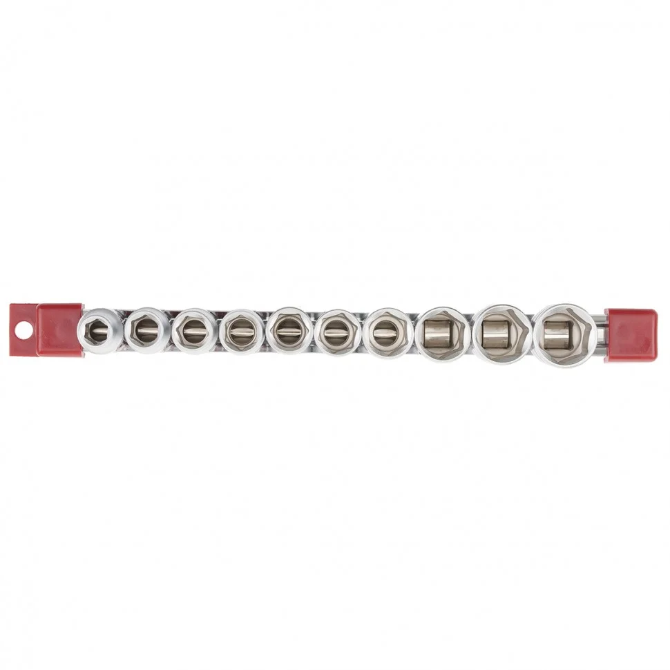 Набор торцевых головок Matrix 13557 с посадочным гнездом 1/2 дюйма и шестигранным профилем, CrV, 10 шт., 10-22 мм, предназначен для работы с резьбовыми соединениями. Он пригодится для бытового ремонта, будет полезен сантехнику, слесарю, авторемонтнику.ПреимуществаВ комплекте 10 насадок диаметром от 10 до 22 мм, которые подходят для самых распространенных крепежей.Торцевые головки выполнены из хромованадиевой стали, поэтому выдерживают повышенные нагрузки.Полированное хромоникелевое покрытие обеспечивает антикоррозионную стойкость.Для головок предусмотрена плашка-держатель, поэтому они всегда будут под рукой и не потеряются.Ярко-красные полоски позволяют быстро найти нужную торцевую головку в рабочем пространстве.