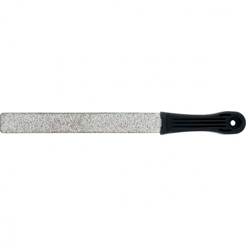 Плоский напильник Matrix 16502 с карбидным напылением, с полотном длиной 200 мм, эффективен при обработке высокотвердых материалов. Оптимальный инструмент для работы с металлами и керамической плиткой. Плоской рабочей поверхностью удобно зачищать и выравнивать прямые края и прямоугольные вырезы. Напильник пригодится во время проведения слесарных и отделочных работ.ПреимуществаИнструмент изготовлен из среднеуглеродистой стали 45, что обеспечивает ему твердость и устойчивость к нагрузкам.На рабочую часть нанесено карбидное напыление, чем обусловлены выдающиеся абразивные свойства напильника.Пластиковая рукоятка с мягким покрытием не выскальзывает из ладони, обеспечивая комфорт во время работы.Отверстие в рукоятке позволяет организовать подвесное хранение.