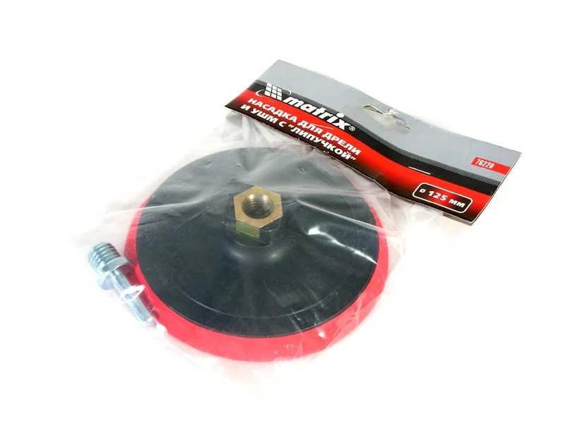 MATRIX 76220 - это опорная тарелка для дрели и болгарки, которая применяется совместно со шлифовальным кругом на липучке. Она используется при шлифовке различных поверхностей с абразивными кругами на ворсовой основе. Тарелка имеет диаметр 125 мм.