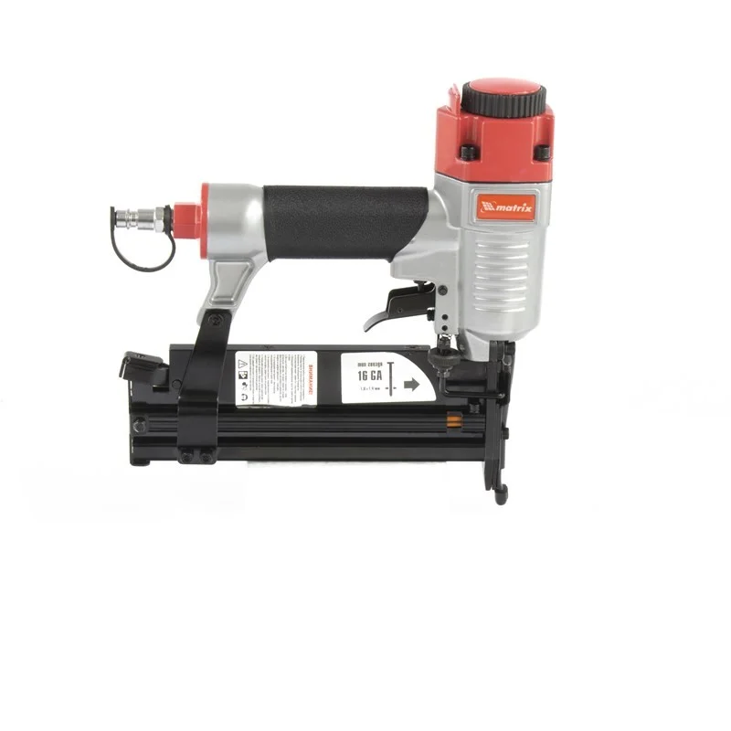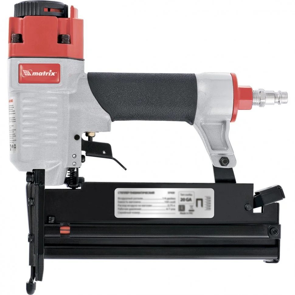 Пневматический нейлер-степлер 3 в 1 Matrix 57427 способен забивать на регулируемую глубину скобы 18 GA и гвозди 18GA и 16GA. Используется для фиксации паркетной доски, фанеры, ДВП, шифера, гипсокартона, ткани и бумаги. Пригодится во время ремонта, а также для сборки мебели и отделочных работ. Расход воздуха составляет 107 л/мин, поэтому нейлер-степлер можно подключать к любому типу компрессоров.ПреимуществаВыбор режима работы — винтовой регулятор позволяет установить оптимальную глубину забивания.Безопасность — предохранитель не допускает случайного выпускания крепежа.Индикатор заполнения магазина — можно отслеживать количество крепежей для своевременной зарядки инструмента.Прочность и долговечность — металлический корпус устойчив к механическим повреждениям.Вместительный магазин — в него помещается 80/100 гвоздей (в зависимости от типа) или 100 скоб.Комфортная работа — обрезиненная рукоятка удобно ложится в руку и не выскальзывает из ладони.Малый вес 1,33 кг — длительная работа со степлером-нейлером не вызывает дискомфорт.Удобное обслуживание — в набор входит масленка и 2 имбусовых ключа.Подтвержденное качество — гарантия на заводской брак действует 3 года.