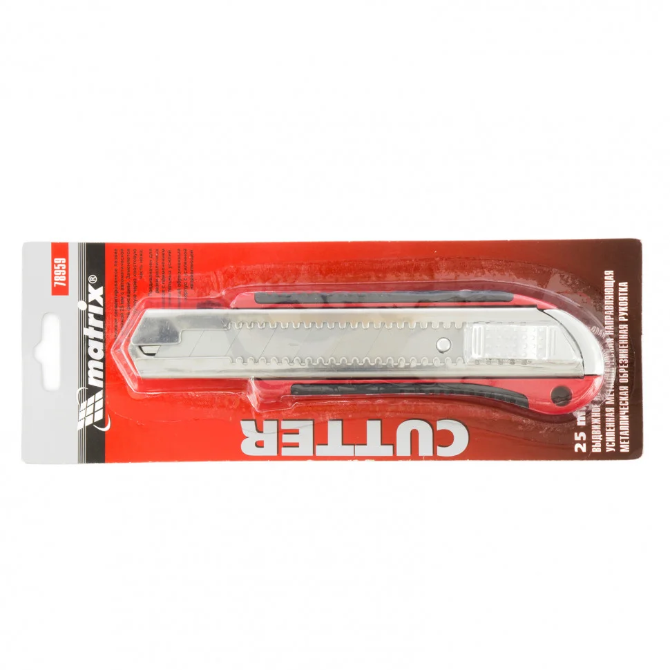 Нож, 25 мм, выдвижное лезвие, усиленная металлическая направляющая, металлическая обрезиненная рукоятка Matrix 78959