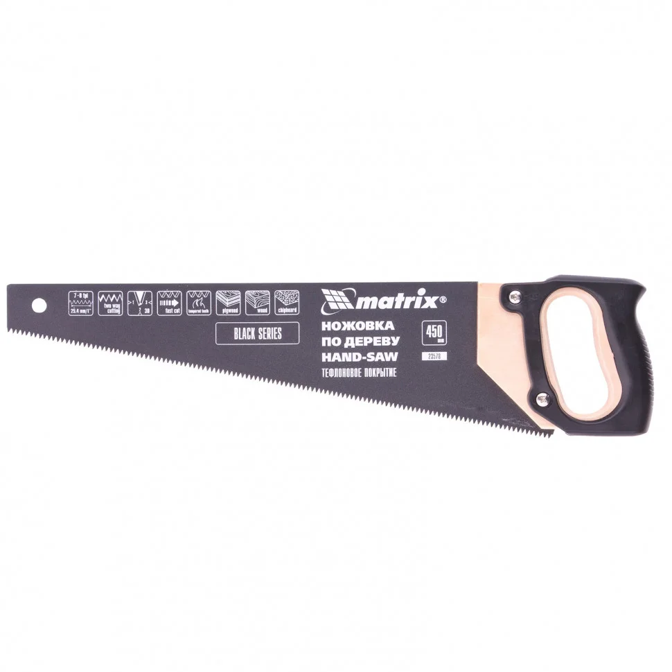 Ножовка по дереву, 450 мм, 7-8 TPI, зуб-3D, каленный зуб, тефлоновое покрытие, деревянная рукоятка Matrix 23578