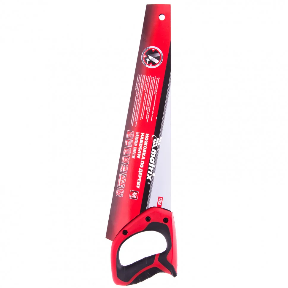 Ножовка по дереву, 450 мм, 7-8 TPI, зуб-3D, каленый зуб, тефлоновое покрытие полотна, двухкомпонентная рукоятка Matrix 23550