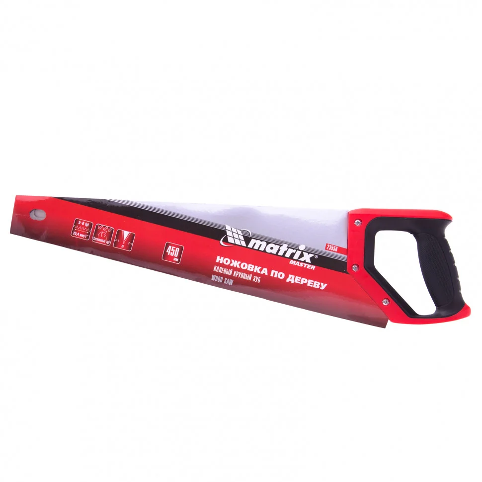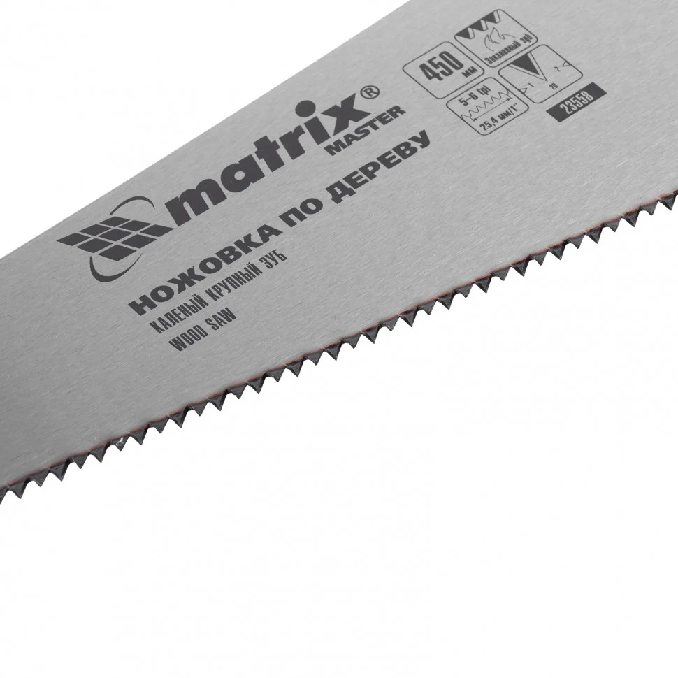 Ножовка по дереву Matrix PRO 23585 с полотном длиной 500 мм, с калеными зубьями с 3D-заточкой и шагом 11-12 TPI, с трехкомпонентной рукояткой, предназначена для продольного и поперечного пиления фанеры, древесины и ДСП. Зубья с заточкой 3D и шагом 11-12 TPI обеспечивают точный и аккуратный рез. Ножовка используется в плотницком деле, а также будет полезна в быту.ПреимуществаПолотно устойчиво к деформациям, т.к. изготовлено из пружинной стали 65Mn.Рабочая кромка долго сохраняет режущие свойства, поскольку ее зубья прошли закалку и имеют твердость 46-52 HRC.Поверхность полотна не подвержена коррозии, т.к. на нее нанесено защитное лаковое покрытие.Ножовкой можно долго работать без усталости благодаря эргономичной трехкомпонентной рукоятке.Надежность инструмента подтверждена производителем, осуществляющим строгий технологический контроль на всех этапах производства.
