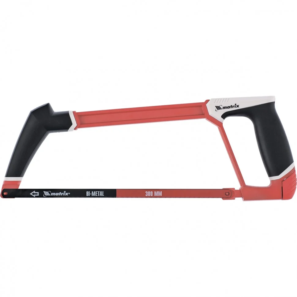 Ножовка по металлу Matrix 77599, 300 мм, с биметаллическим полотном и двухкомпонентной рукояткой, оптимально подходит для распиливания стали, алюминия и пластика. Она пригодится для решения профессиональных задач в процессе строительных и слесарных работ. Предусмотрена установка полотна под углом 90° и 45° для выполнения продольного пропила.ПреимуществаВысокая скорость работы — биметаллическое полотно оснащено зубьями из быстрорежущей стали.Стальная рама с антикоррозийным покрытием — ножовку можно использовать на открытом воздухе и в условиях высокой влажности.Удобство работы — на основании и рукоятке ножовки имеется обрезиненное покрытие.Винтовой механизм — для замены полотна не требуется специальный инструмент.