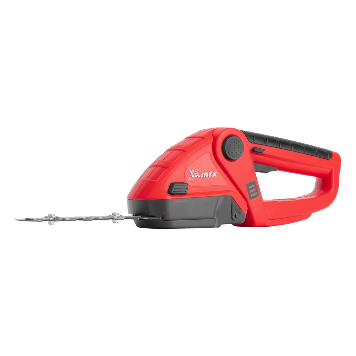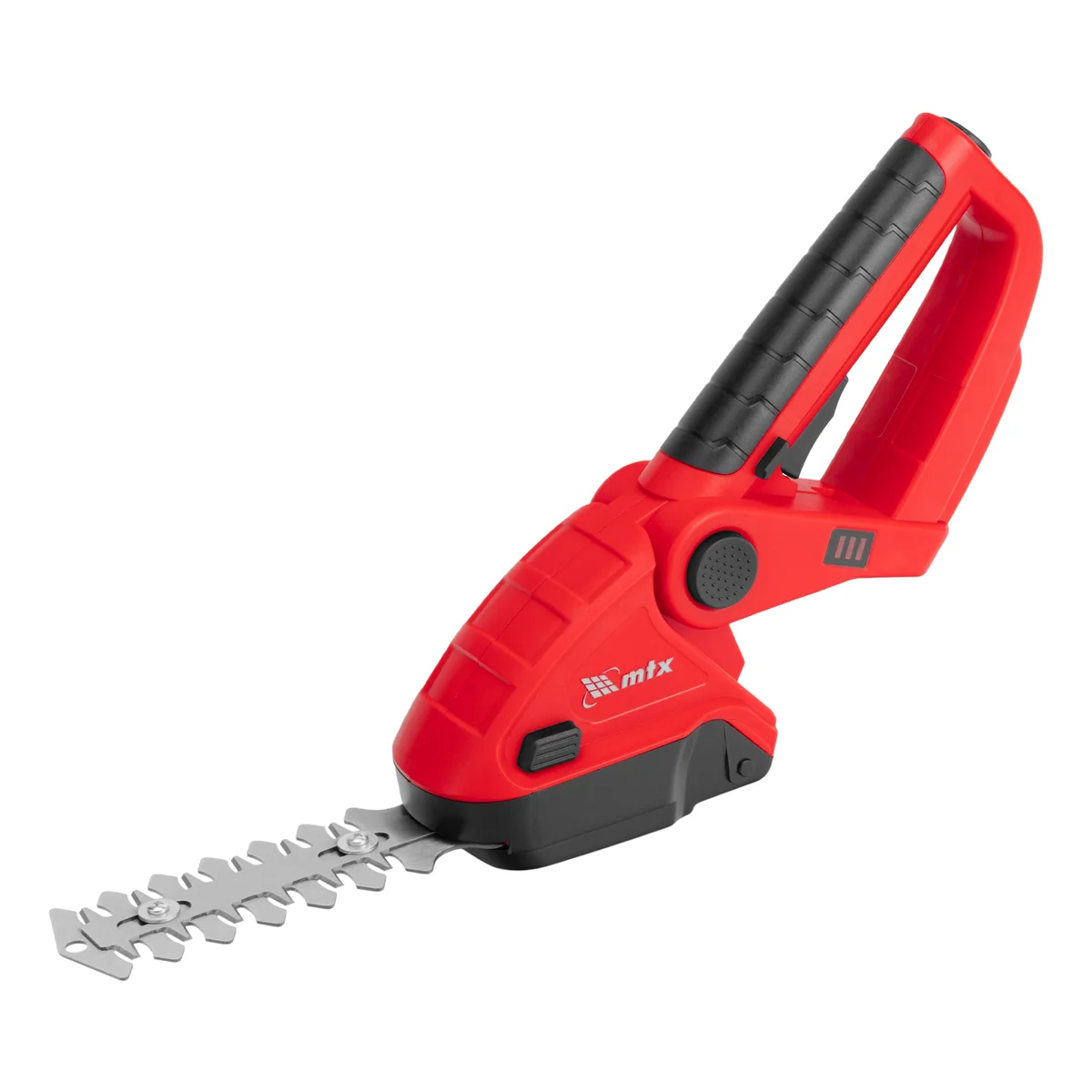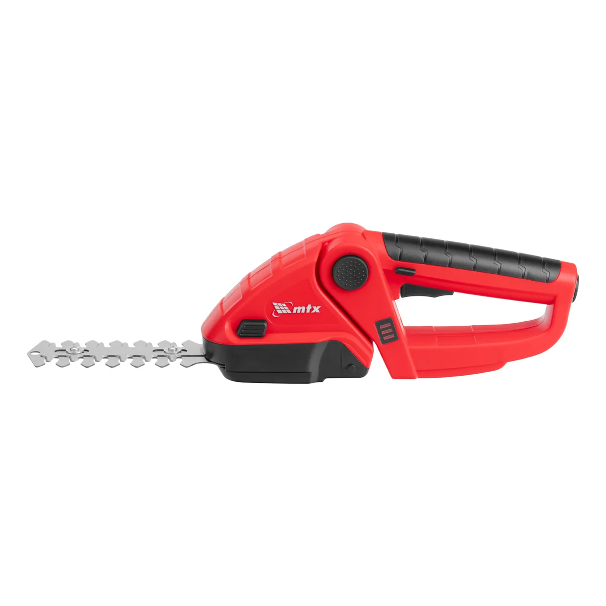 Аккумуляторные ножницы-кусторез MTX GSM-3 59480 работают от аккумулятора Li-Ion номинальным напряжением 3,6 В и емкостью 1,5 А·ч. Предназначены для срезания травы, обрезки кустов и живых веток диаметром до 8 мм. Подходят для ухода за живой изгородью. Ширина среза в режиме ножниц составляет 80 мм, в режиме кустореза — 120 мм, что позволяет эффективно решать поставленные задачи. Инструмент не требует подключения к стационарному источнику питания и может использоваться на любом расстоянии от дома. Пригодится владельцам дачных участков.