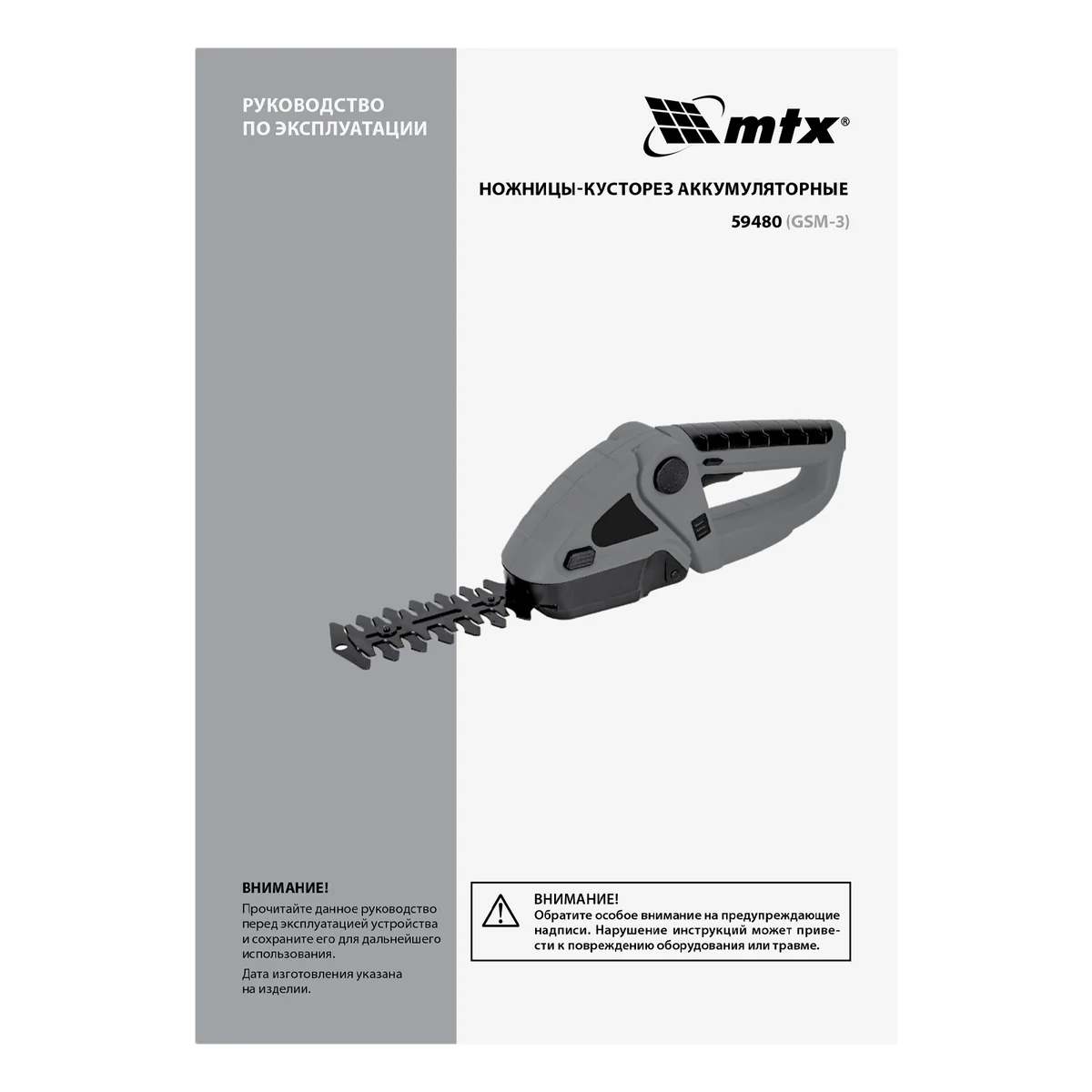Ножницы-кусторез аккумуляторные GSM-3, Li-Ion, 3,6 В MTX 59480