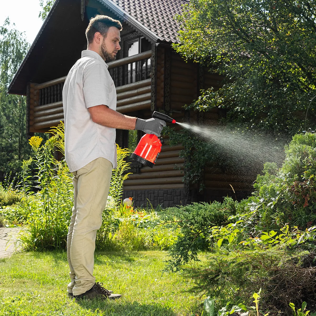 - Мобильность — опрыскиватель не зависит от наличия розетки, поэтому с ним можно свободно перемещаться по дому и вдали от него.
