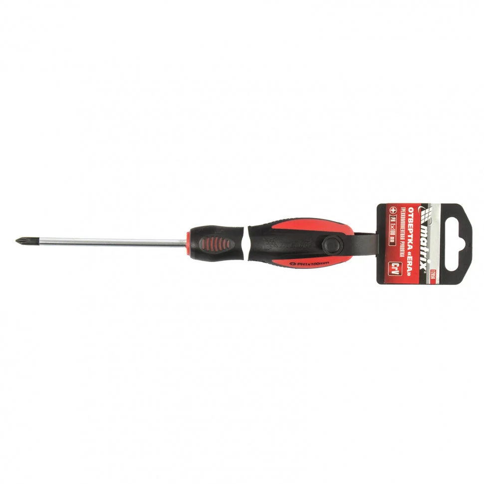 Отвертка Matrix «Era» 12056, PH1 х 100 мм, из стали CrV, с 3-х компонентной рукояткой, подходит для профессионального использования при осуществлении монтажных, ремонтных и строительных работ. С ее помощью можно выполнить монтаж/демонтаж крепежа Phillips «крест». Стержня длиной 100 мм достаточно для работ на поверхностях и в углублениях.ПреимуществаЖало и стержень выполнены из высококачественной хромованадиевой стали, это придает им прочность и долговечность.Шлиц прошел индукционную закалку до твердости 50-55 HRC, благодаря чему снижается его стирание и риск залома.Фосфатное покрытие защищает жало от коррозии и обеспечивает улучшенное сцепление с головкой крепежа.Намагниченное жало гарантирует надежное удержание крепежа и позволяет освободить одну руку во время работы.Маркировка рабочих параметров на рукоятке повышает удобство использования отвертки.Трехкомпонентная рукоятка с насечками обеспечивает надежный хват и снижает усталость в руках.