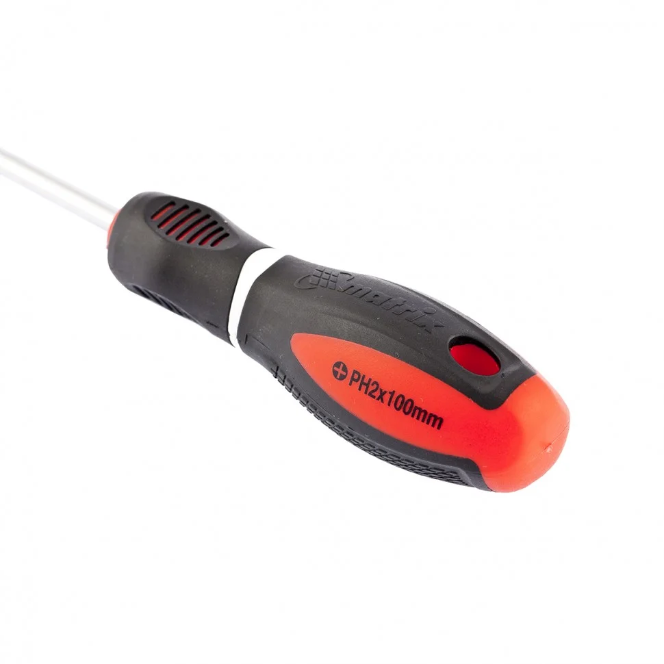 Отвертка Matrix «Era» 12062, PH2 х 150 мм, из стали CrV, с 3-х компонентной рукояткой, подходит для профессионального использования при осуществлении монтажных, ремонтных и строительных работ. С ее помощью можно выполнить монтаж/демонтаж крепежа Phillips «крест». Стержня длиной 150 мм достаточно для работ на поверхностях и в углублениях.ПреимуществаЖало и стержень выполнены из высококачественной хромованадиевой стали, это придает им прочность и долговечность.Шлиц прошел индукционную закалку до твердости 50-55 HRC, благодаря чему снижается его стирание и риск залома.Фосфатное покрытие защищает жало от коррозии и обеспечивает улучшенное сцепление с головкой крепежа.Намагниченное жало гарантирует надежное удержание крепежа и позволяет освободить одну руку во время работы.Маркировка рабочих параметров на рукоятке повышает удобство использования отвертки.Трехкомпонентная рукоятка с насечками обеспечивает надежный хват и снижает усталость в руках.
