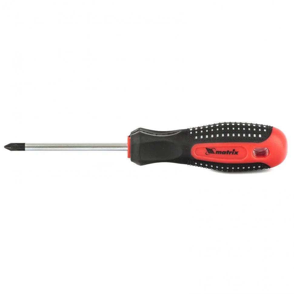 Отвертка Matrix Fusion 11440, PH1 х 75 мм, из стали CrV, с 3-х компонентной рукояткой «anti slip», предназначена для работ с резьбовым крепежом, имеющим крестообразный шлиц Phillips. Профессиональная отвертка пригодится при выполнении строительных, монтажных и ремонтных работ, а также при сборке мебели и ремонте автомобиля. Длина стержня 75 мм позволяет работать с крепежом, расположенным на поверхностях и в углублениях.ПреимуществаСтержень и жало выполнены из износостойкой легированной стали CrV твердостью 50-52 HRC, что обеспечивает долгий срок службы отвертки.Намагниченный наконечник позволяет зафиксировать крепеж и направлять отвертку одной рукой, а другой придерживать закрепляемую деталь.Фосфатированный шлиц обеспечивает улучшенное сцепление с крепежом для удобства работы.Трехкомпонентная рукоятка «anti slip» с подпальцевыми выемками и специальными секциями обеспечивает комфортный и надежный хват без проскальзывания.