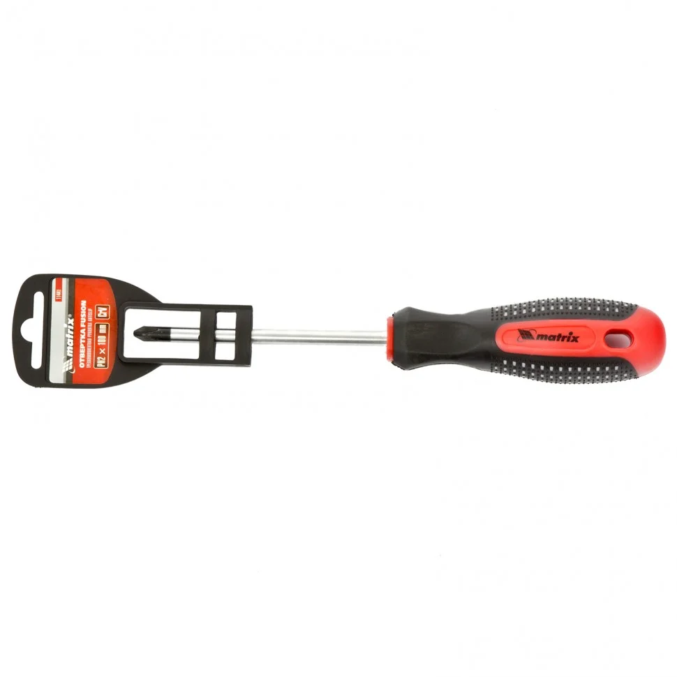 Отвертка Matrix Fusion 11441, PH2 х 100 мм, из стали CrV, с 3-х компонентной рукояткой «anti slip», предназначена для работ с резьбовым крепежом, имеющим крестообразный шлиц Phillips. Профессиональная отвертка пригодится при выполнении строительных, монтажных и ремонтных работ, а также при сборке мебели и ремонте автомобиля. Длина стержня 100 мм позволяет работать с крепежом в углублениях.ПреимуществаСтержень и жало выполнены из износостойкой легированной стали CrV твердостью 50-52 HRC, что обеспечивает долгий срок службы отвертки.Намагниченный наконечник позволяет зафиксировать крепеж и направлять отвертку одной рукой, а другой придерживать закрепляемую деталь.Фосфатированный шлиц обеспечивает улучшенное сцепление с крепежом для удобства работы.Трехкомпонентная рукоятка «anti slip» с подпальцевыми выемками и специальными секциями обеспечивает комфортный и надежный хват без проскальзывания.
