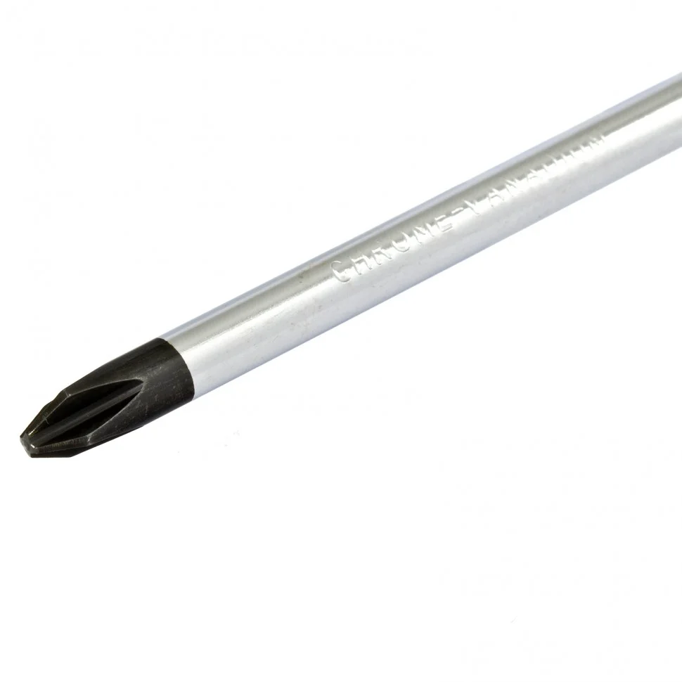 Отвертка Matrix Fusion 11443, PH2 х 150 мм, из стали CrV, с 3-х компонентной рукояткой «anti slip», предназначена для работ с резьбовым крепежом, имеющим крестообразный шлиц Phillips. Профессиональная отвертка пригодится при выполнении строительных, монтажных и ремонтных работ, а также при сборке мебели и ремонте автомобиля. Длина стержня 150 мм позволяет работать с крепежом в углублениях.ПреимуществаСтержень и жало выполнены из износостойкой легированной стали CrV твердостью 50-52 HRC, что обеспечивает долгий срок службы отвертки.Намагниченный наконечник позволяет зафиксировать крепеж и направлять отвертку одной рукой, а другой придерживать закрепляемую деталь.Фосфатированный шлиц обеспечивает улучшенное сцепление с крепежом для удобства работы.Трехкомпонентная рукоятка «anti slip» с подпальцевыми выемками и специальными секциями обеспечивает комфортный и надежный хват без проскальзывания.