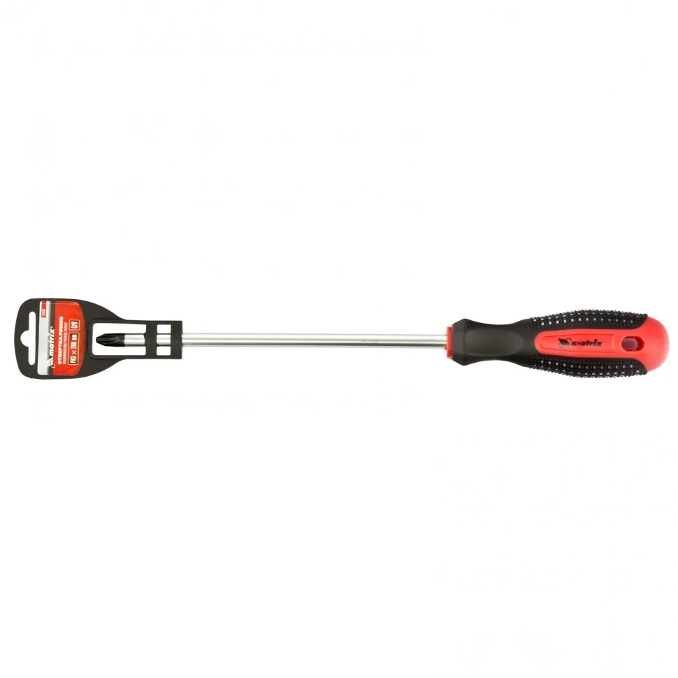 Отвертка Matrix Fusion 11447, PH3 х 200 мм, из стали CrV, с 3-х компонентной рукояткой «anti slip», предназначена для работ с резьбовым крепежом, имеющим крестообразный шлиц Phillips. Профессиональная отвертка пригодится при выполнении строительных, монтажных и ремонтных работ, а также при сборке мебели и ремонте автомобиля. Длина стержня 200 мм позволяет работать с крепежом в значительных углублениях.ПреимуществаСтержень и жало выполнены из износостойкой легированной стали CrV твердостью 50-52 HRC, что обеспечивает долгий срок службы отвертки.Намагниченный наконечник позволяет зафиксировать крепеж и направлять отвертку одной рукой, а другой придерживать закрепляемую деталь.Фосфатированный шлиц обеспечивает улучшенное сцепление с крепежом для удобства работы.Трехкомпонентная рукоятка «anti slip» с подпальцевыми выемками и специальными секциями обеспечивает комфортный и надежный хват без проскальзывания.