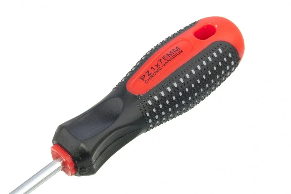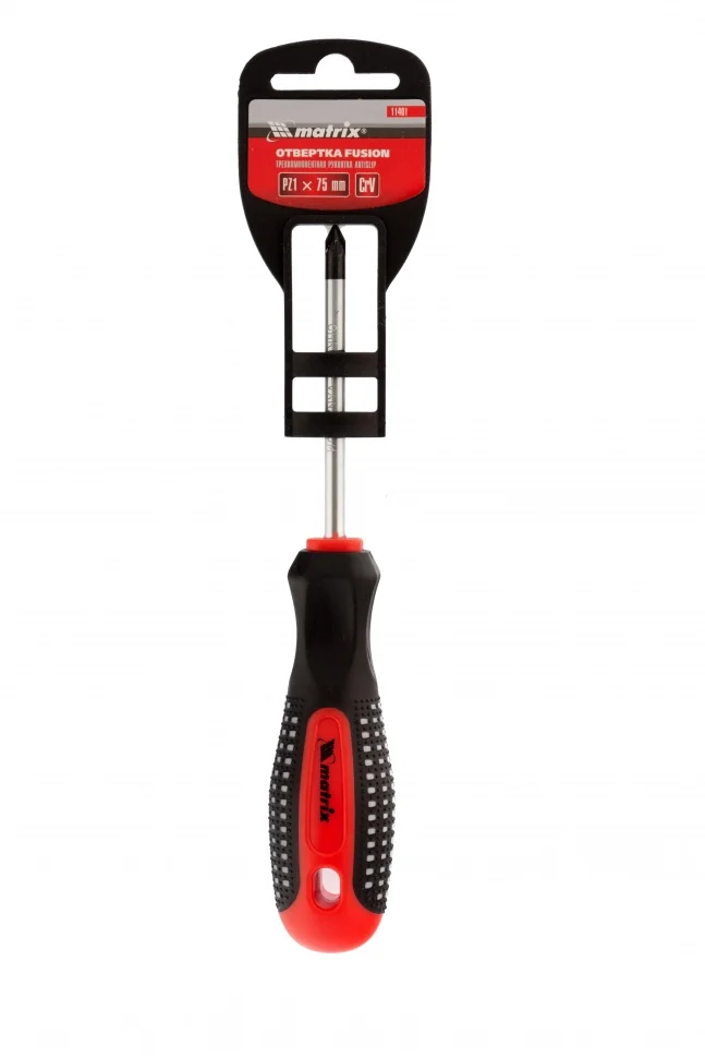 Отвертка Matrix Fusion 11401, PZ1 x 75 мм, CrV, с 3-х компонентной рукояткой «anti slip», используется для монтажа и демонтажа крепежных элементов калибра Pozidriv 1 с дополнительными ребрами на шлице. Она пригодится профессиональным мастерам при осуществлении строительных и монтажных работ. Длина стержня 75 мм оптимально подходит для работ на поверхностях и в углублениях.ПреимуществаСтержень и жало выполнены из износостойкой легированной стали CrV твердостью 50-52 HRC, что обеспечивает долгий срок службы отвертки.Намагниченный наконечник позволяет зафиксировать крепеж и направлять отвертку одной рукой, а другой придерживать закрепляемую деталь.Фосфатированный шлиц обеспечивает улучшенное сцепление с крепежом для удобства работы.Трехкомпонентная рукоятка «anti slip» с подпальцевыми выемками и специальными секциями обеспечивает комфортный и надежный хват без проскальзывания.