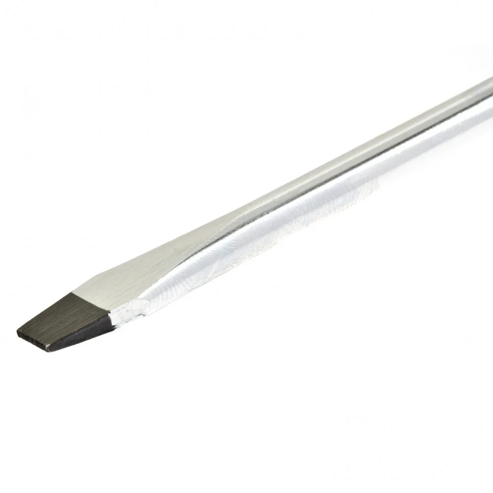 Отвертка Matrix Fusion 11423, SL6,0 х 100 мм, из стали CrV, с 3-х компонентной рукояткой «anti slip», предназначена для завинчивания и отвинчивания резьбового крепежа со шлицем Slotted «минус». Она рассчитана на профессиональное использование для ремонта автомобилей, монтажа конструкций и т.д. Стержень длиной 100 мм делает отвертку оптимальным инструментом для работы с крепежом на поверхностях и в углублениях.ПреимуществаСтержень и жало выполнены из износостойкой легированной стали CrV твердостью 50-52 HRC, что обеспечивает долгий срок службы отвертки.Намагниченный наконечник позволяет зафиксировать крепеж и направлять отвертку одной рукой, а другой придерживать закрепляемую деталь.Фосфатированный шлиц обеспечивает улучшенное сцепление с крепежом для удобства работы.Трехкомпонентная рукоятка «anti slip» с подпальцевыми выемками и специальными секциями обеспечивает комфортный и надежный хват без проскальзывания.