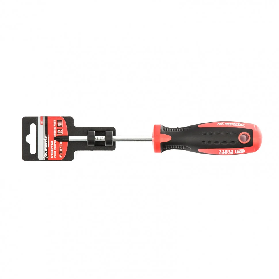 Отвертка Matrix «Profi» 11844 длиной 100 мм, из стали S2, с двухкомпонентной рукояткой, служит для монтажа и демонтажа резьбовых соединений типоразмера PH2. Профессиональная отвертка станет незаменимым помощником при осуществлении монтажных, строительных и ремонтных работ. Благодаря стержню длиной 100 мм можно закручивать и откручивать крепеж в углублениях.ПреимуществаТвердость и прочность обеспечивается высоким качеством материалов: стержень выполнен из стали CrV, а жало — из закаленной инструментальной стали S2.Рабочая часть фосфатирована, таким образом улучшается сцепление со шлицем крепежа.Намагниченное жало позволяет зафиксировать крепеж и освободить одну руку для удержания закрепляемой детали.Маркировка с рабочими параметрами на рукоятке отвертки обеспечивает удобство эксплуатации.Отвертка произведена на Тайване с высоким контролем качества, что гарантирует ее надежность и долговечность.Трехкомпонентная рукоятка со специальными насечками надежно лежит в руке.Рукоятка выполнена методом цельного литья, что позволяет добиться прочного сцепления с рабочей частью.
