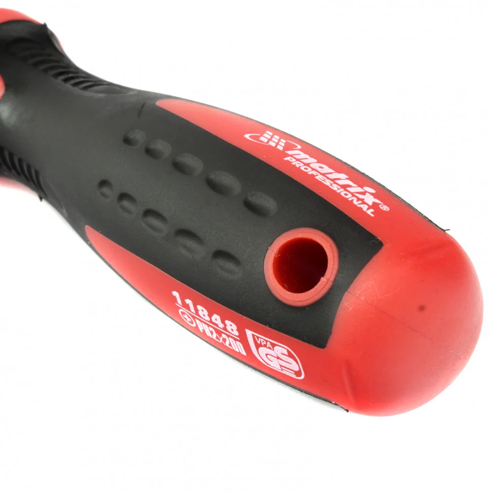 Отвертка Matrix «Profi» 11848 длиной 200 мм, из стали S2, с двухкомпонентной рукояткой, служит для монтажа и демонтажа резьбовых соединений типоразмера PH2. Профессиональная отвертка станет незаменимым помощником при осуществлении монтажных, строительных и ремонтных работ. Благодаря стержню длиной 200 мм можно закручивать и откручивать крепеж в значительных углублениях.ПреимуществаТвердость и прочность обеспечивается высоким качеством материалов: стержень выполнен из стали CrV, а жало — из закаленной инструментальной стали S2.Рабочая часть фосфатирована, таким образом улучшается сцепление со шлицем крепежа.Намагниченное жало позволяет зафиксировать крепеж и освободить одну руку для удержания закрепляемой детали.Маркировка с рабочими параметрами на рукоятке отвертки обеспечивает удобство эксплуатации.Отвертка произведена на Тайване с высоким контролем качества, что гарантирует ее надежность и долговечность.Трехкомпонентная рукоятка со специальными насечками надежно лежит в руке.Рукоятка выполнена методом цельного литья, что позволяет добиться прочного сцепления с рабочей частью.