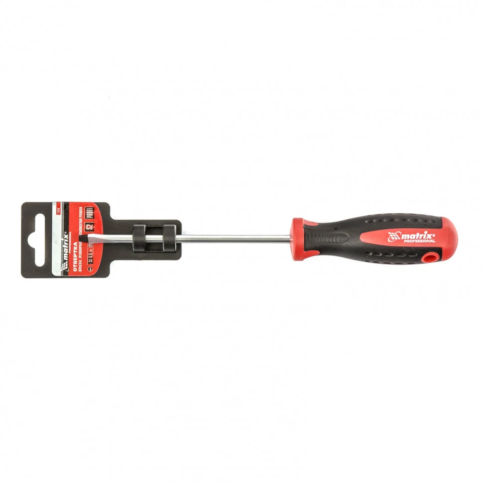 Отвертка Matrix «Profi» 11816, SL5,5 х 125 мм, из стали S2, с двухкомпонентной рукояткой, служит для монтажа и демонтажа крепежа со шлицем Slotted «минус». Профессиональная отвертка станет незаменимым помощником при осуществлении монтажных, строительных и ремонтных работ. Благодаря стержню длиной 125 мм можно закручивать и откручивать крепеж в углублениях.ПреимуществаТвердость и прочность обеспечивается высоким качеством материалов: стержень выполнен из стали CrV, а жало — из закаленной инструментальной стали S2.Рабочая часть фосфатирована, таким образом улучшается сцепление со шлицем крепежа.Намагниченное жало позволяет зафиксировать крепеж и освободить одну руку для удержания закрепляемой детали.Маркировка с рабочими параметрами на рукоятке отвертки обеспечивает удобство эксплуатации.Отвертка произведена на Тайване с высоким контролем качества, что гарантирует ее надежность и долговечность.Трехкомпонентная рукоятка со специальными насечками надежно лежит в руке.Рукоятка выполнена методом цельного литья, что позволяет добиться прочного сцепления с рабочей частью.