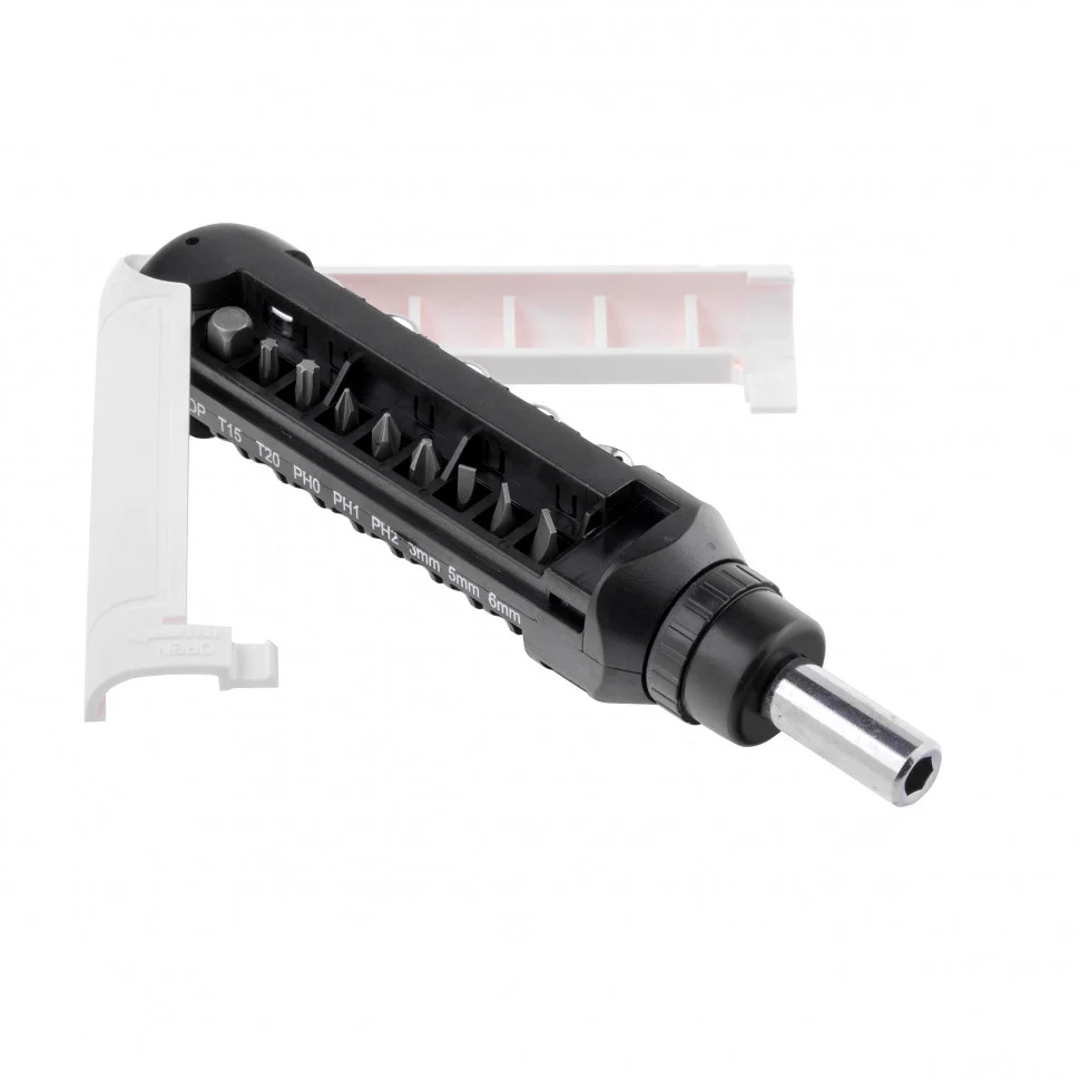 Реверсивная отвертка Matrix PRO 13343 с набором бит и торцевых головок из стали CrV входит в комплект из 15 шт. и используется для монтажа и демонтажа резьбовых соединений. Поставляется с битами под шлицы PH, SL и TORX, а также с торцевыми головками самых распространенных размеров. Установка торцевой головки занимает несколько секунд благодаря входящему в набор адаптеру. Трещоточный механизм сокращает время работы, т.к. избавляет мастера от необходимости перехватывать рукоятку. Отвертка пригодится для выполнения монтажных и ремонтных работ в полупрофессиональной сфере и в быту.ПреимуществаСтержень отвертки, биты и торцевые головки изготовлены из стали хромованадиевой группы, что обеспечивает им высокую прочность и износостойкость.Твердость насадок составляет 50-60 HRC, поэтому они выдерживают значительные нагрузки.Переключатель реверса позволяет мгновенно менять направление вращения насадки.Для бит и торцевых головок предусмотрены отсеки в корпусе отвертки, поэтому они не потеряются при хранении и транспортировке.