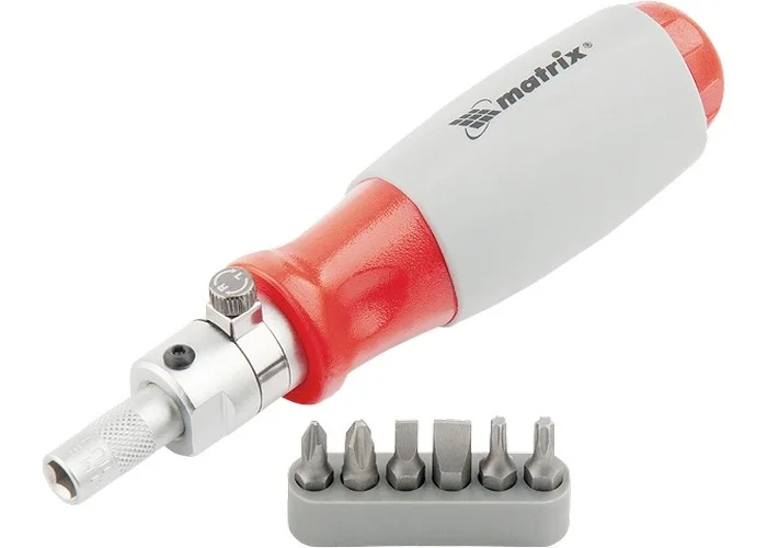 Отвертка реверсивная, силовой элемент под ключ, набор бит, CrV, 6 шт Matrix 11549