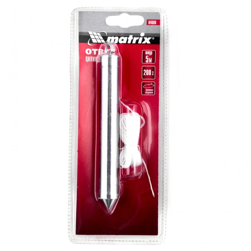 Цилиндрический отвес Matrix 84886 весом 200 г, в комплекте со шнуром 5 м, позволяет осуществить контроль вертикали. Он пригодится мастерам при проведении работ внутри и снаружи помещений. Отвес в форме цилиндра обеспечивает отличную центровку.ПреимуществаПрочность и надежность — отвес выполнен из стали.Защита от коррозии — устройство имеет хромированный корпус.Точность и удобство работы — шнур крепится на отвес с помощью специальной петли, это снижает его вращение.Высокий ресурс — плетеный шнур из трехпрядного капрона выдерживает нагрузки до 1 кг.Длина шнура 5 метров — возможна разметка высоких стен.Удобство хранения и транспортировки — изделие легко помещается в карман.