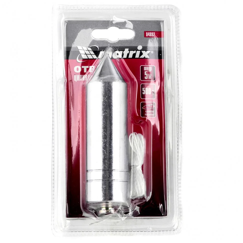 Цилиндрический отвес Matrix 84892 весом 500 г, в комплекте со шнуром 5 м, позволяет осуществить контроль вертикали. Он пригодится мастерам при проведении работ внутри и снаружи помещений. Отвес в форме цилиндра обеспечивает отличную центровку. За счет увеличенного веса 300 г оптимален для наружных работ.ПреимуществаПрочность и надежность — отвес выполнен из стали.Защита от коррозии — устройство имеет хромированный корпус.Точность и удобство работы — шнур крепится на отвес с помощью специальной петли, это снижает его вращение.Высокий ресурс — плетеный шнур из трехпрядного капрона выдерживает нагрузки до 1 кг.Длина шнура 5 метров — возможна разметка высоких стен.Удобство хранения и транспортировки — изделие легко помещается в карман.
