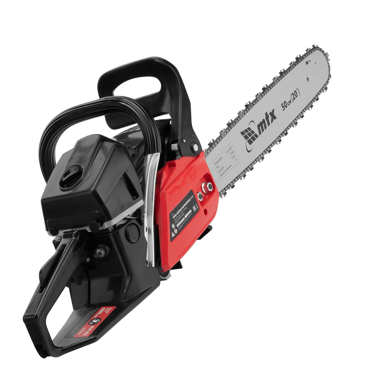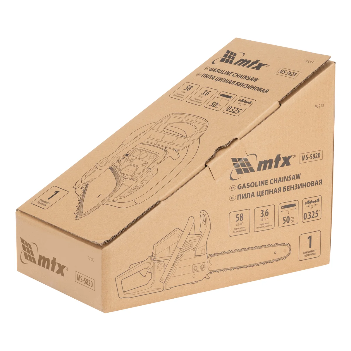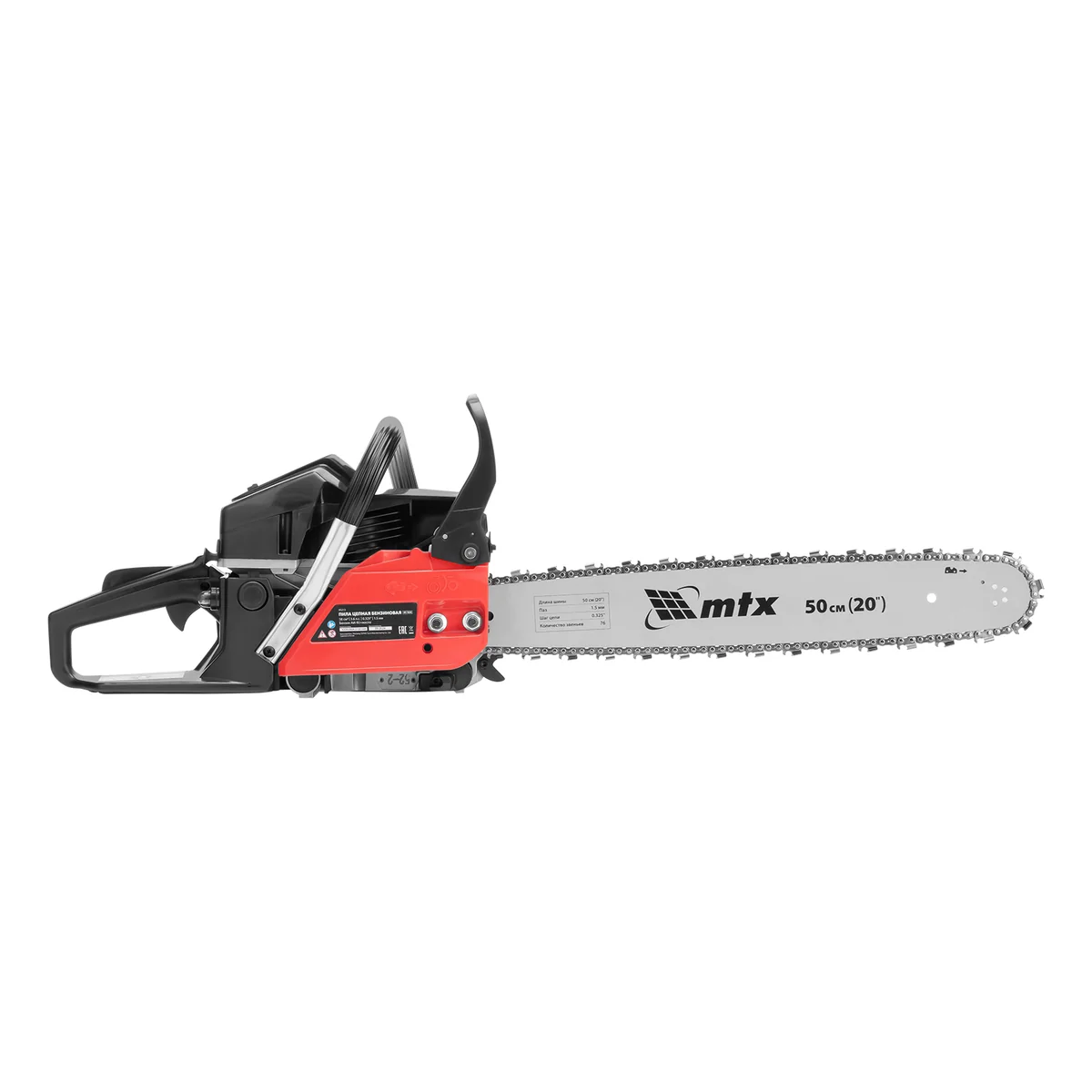 Цепная бензиновая пила MTX MS-5820 95213 оснащена двигателем объемом 58 см3 и мощностью 3,6 л.с. Предназначена для распиловки древесины, используется для валки деревьев, а также для распиливания веток, опиливания сучков и заготовки дров. Комплектуется шиной длиной 50 см, с шагом цепи 0,325″ и 76 звеньями, с пазом 1,5 мм. Будет полезна для проведения ремонтных, строительных работ, облагораживания сада и т.д.