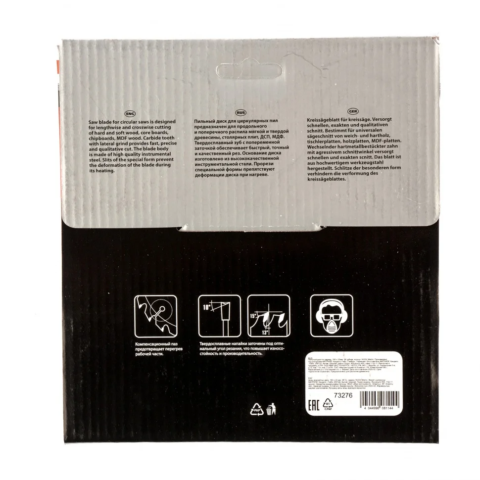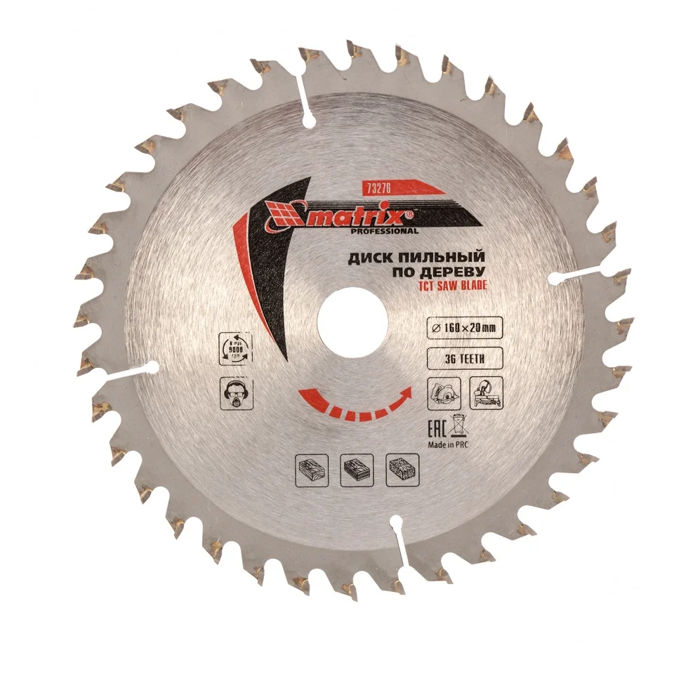 Пильный диск по дереву Matrix ф160 х 20 мм 73276 с 36 зубьями и переходным кольцом 20/16 применяется в качестве оснастки на циркулярных и торцовочных пилах с соответствующим внутренним и внешним диаметром. Он используется для продольного/поперечного реза материалов из мягкой и твердой древесины, ДСП, ДВП, фанеры, столярных плит. В комплект входит переходное кольцо 20/16 для возможности самостоятельного изменения посадочного диаметра при необходимости.ПреимуществаСредние зубья с попеременной заточкой обеспечивают оптимальное соотношение скорости и качества реза, диск подходит для бытового и профессионального применения.Основание выполнено из стали 65Mn, а режущая пластина - из сплава YG8 твердостью более 88 HRA, поэтому диск имеет высокий ресурс и долго сохраняет заточку.Зубья прошли алмазную заточку, что повышает эффективность реза и позволяет увеличить срок службы диска.Компенсационные прорези снижают риск заклинивания диска, делают рез максимально точным и стабильным.