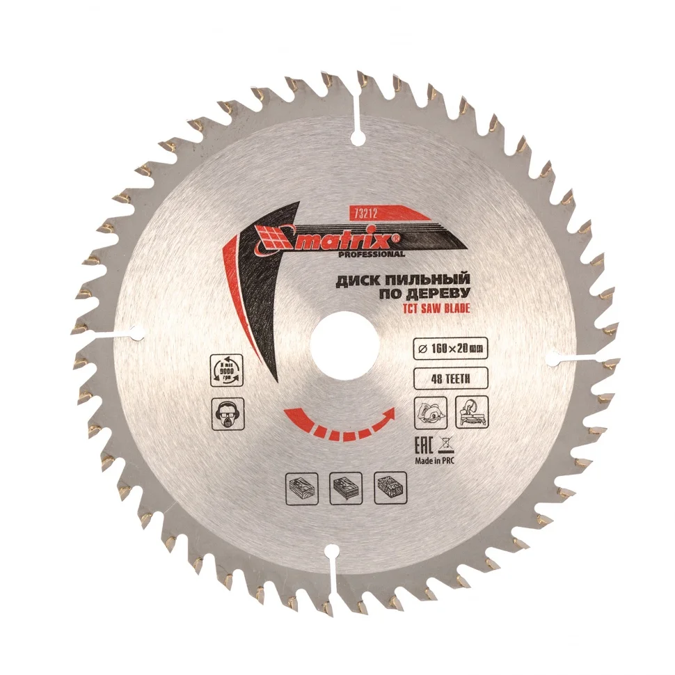 Пильный диск по дереву Matrix ф160 х 20 мм 73212 с 48 зубьями и переходным кольцом 20/16 применяется в качестве оснастки на циркулярных и торцовочных пилах с соответствующим внутренним и внешним диаметром. Он используется преимущественно для поперечного реза материалов из мягкой и твердой древесины, ДСП, ДВП, фанеры, столярных плит. В комплект входит переходное кольцо 20/16 для возможности самостоятельного изменения посадочного диаметра при необходимости.ПреимуществаМелкие зубья с попеременной заточкой обеспечивают точность, качество реза и получение чистых кромок, диск подходит для бытового и профессионального применения.Основание выполнено из стали 65Mn, а режущая пластина - из сплава YG8 твердостью более 88 HRA, поэтому диск имеет высокий ресурс и долго сохраняет заточку.Зубья прошли алмазную заточку, что повышает эффективность реза и позволяет увеличить срок службы диска.Компенсационные прорези снижают риск заклинивания диска, делают рез максимально точным и стабильным.
