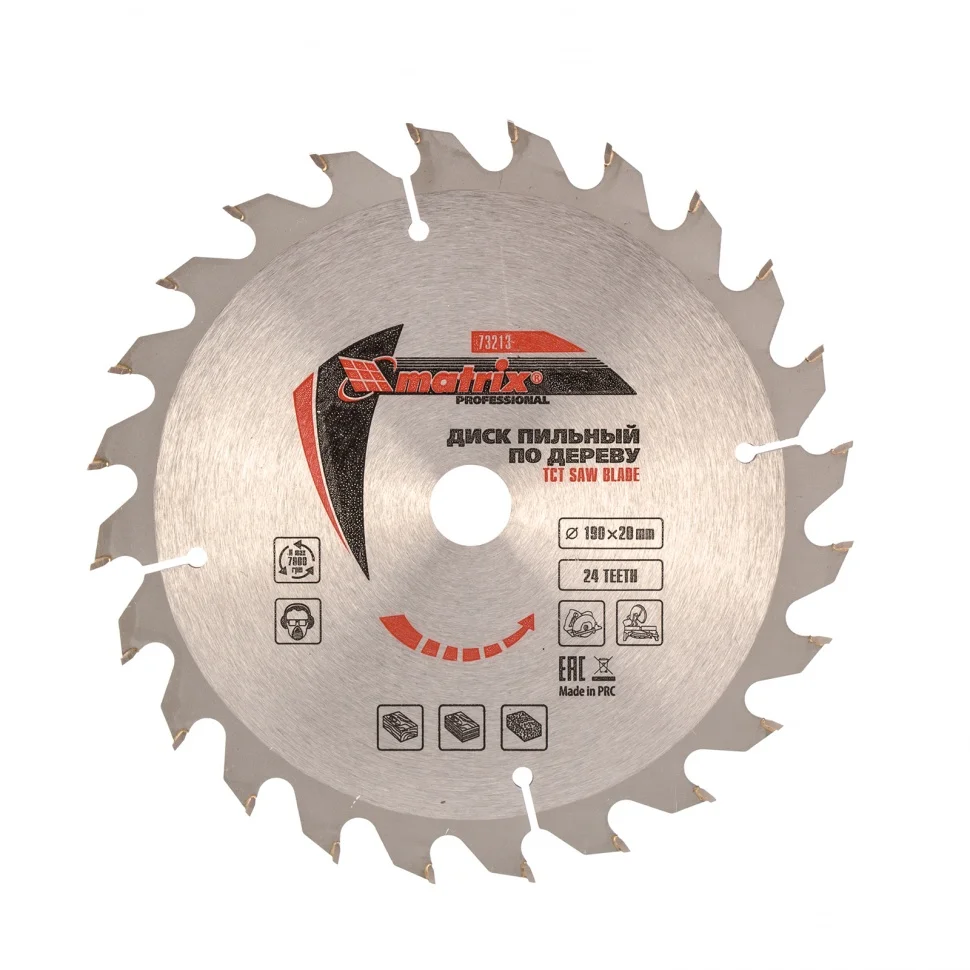 Пильный диск по дереву Matrix ф190 х 20 мм 73213 с 24 зубьями и переходным кольцом 20/16 применяется в качестве оснастки на циркулярных и торцовочных пилах с соответствующим внутренним и внешним диаметром. Он используется для продольного/поперечного реза материалов из мягкой и твердой древесины, ДСП, ДВП, фанеры, столярных плит. В комплект входит переходное кольцо 20/16 для возможности самостоятельного изменения посадочного диаметра при необходимости.ПреимуществаКрупные зубья с попеременной заточкой обеспечивают высокую скорость работы и качественный распил материалов, диск оптимально подходит для бытового и профессионального применения.Основание выполнено из стали 65Mn, а режущая пластина - из сплава YG8 твердостью более 88 HRA, поэтому диск имеет высокий ресурс и долго сохраняет заточку.Зубья прошли алмазную заточку, что повышает эффективность реза и позволяет увеличить срок службы диска.Компенсационные прорези снижают риск заклинивания диска, делают рез максимально точным и стабильным.