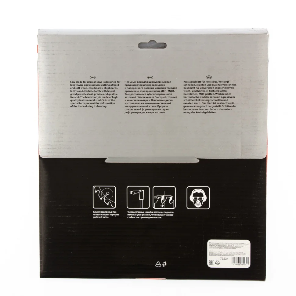 Пильный диск по дереву Matrix ф235 х 32 мм 73234 с 48 зубьями и переходным кольцом 32/30 применяется в качестве оснастки на циркулярных и торцовочных пилах с соответствующим внутренним и внешним диаметром. Он используется преимущественно для поперечного реза материалов из мягкой и твердой древесины, ДСП, ДВП, фанеры, столярных плит. В комплект входит переходное кольцо 32/30 для возможности самостоятельного изменения посадочного диаметра при необходимости.ПреимуществаМелкие зубья с попеременной заточкой обеспечивают точность, качество реза и получение чистых кромок, диск подходит для бытового и профессионального применения.Основание выполнено из стали 65Mn, а режущая пластина - из сплава YG8 твердостью более 88 HRA, поэтому диск имеет высокий ресурс и долго сохраняет заточку.Зубья прошли алмазную заточку, что повышает эффективность реза и позволяет увеличить срок службы диска.