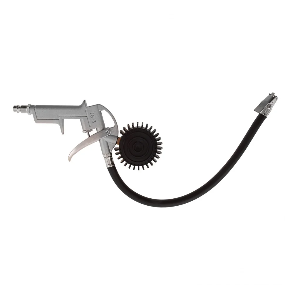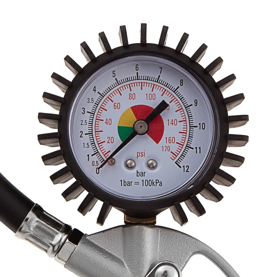 Пневматический пистолет Matrix 57322 с рабочим давлением 8 бар и производительностью 230 л/мин применяется для подкачивания сжатым воздухом автомобильных шин. Подходит для использования в гаражах, шиномонтажных мастерских и автосервисах. Механический манометр обеспечивает визуальный контроль давления, а спускной клапан позволяет стравливать воздух в случае перекачки шин, защищая их от преждевременного износа.Преимущества: 2 шкалы на манометре (Пси и Бар) позволяют контролировать и настраивать параметры давления. Простое управление — даже начинающий мастер быстро разберется, как работать с пистолетом. Удобный рычаг позволяет подавать воздух в шины как быстро, так и дозированно. Качество сборки — прочный корпус и герметичные соединения обеспечивают долговечность пневмопистолета и высокую эффективность работы без утечек воздуха. Гибкий шланг входит в комплект поставки. Он не твердеет на морозе, обеспечивает легкую подкачку даже спаренных колес. Быстросъемное соединение Рапид (Euro) позволяет сэкономить время на подключение пневмопистолета к компрессору. Пневмопистолет весит всего 250 г, хорошо ложится в руку, поэтому работать с ним