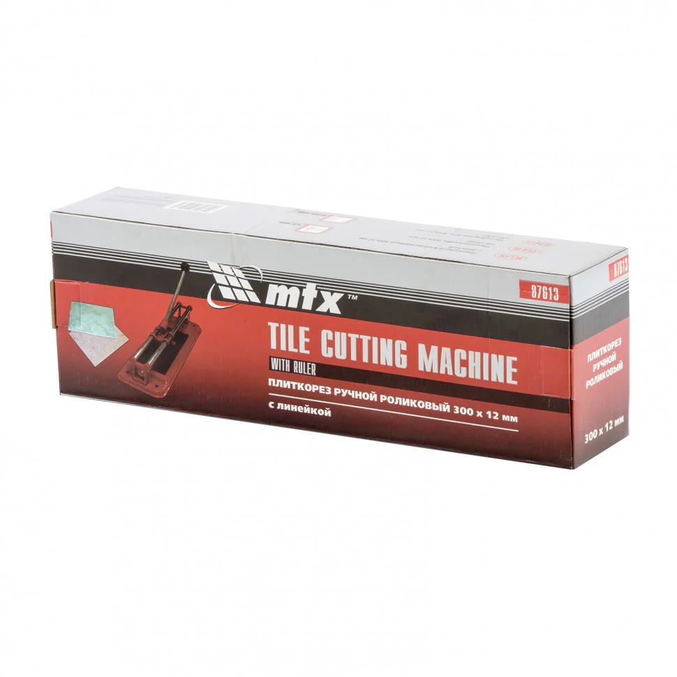 Плиткорез MTX 87613 — это инструмент для работы с керамической плиткой размером до 300 х 12 мм. Благодаря ему резка происходит быстро и легко, а срез получается ровным и аккуратным.ПреимуществаРежущий ролик обладает высокой износостойкостью и ресурсом за счет твердосплавного материала ВК-8, из которого выполнен.В основании плиткореза имеются отверстия для фиксации к поверхности и предотвращения смещения.В процессе резки каретка свободно передвигается благодаря двум направляющим из высококачественной инструментальной стали с антикоррозийным покрытием.Удобство и качество работы достигаются за счет стального основания с мягкими амортизирующими накладками, предотвращающими сдвиг плитки.Захват на рукоятке повышает комфорт использования.