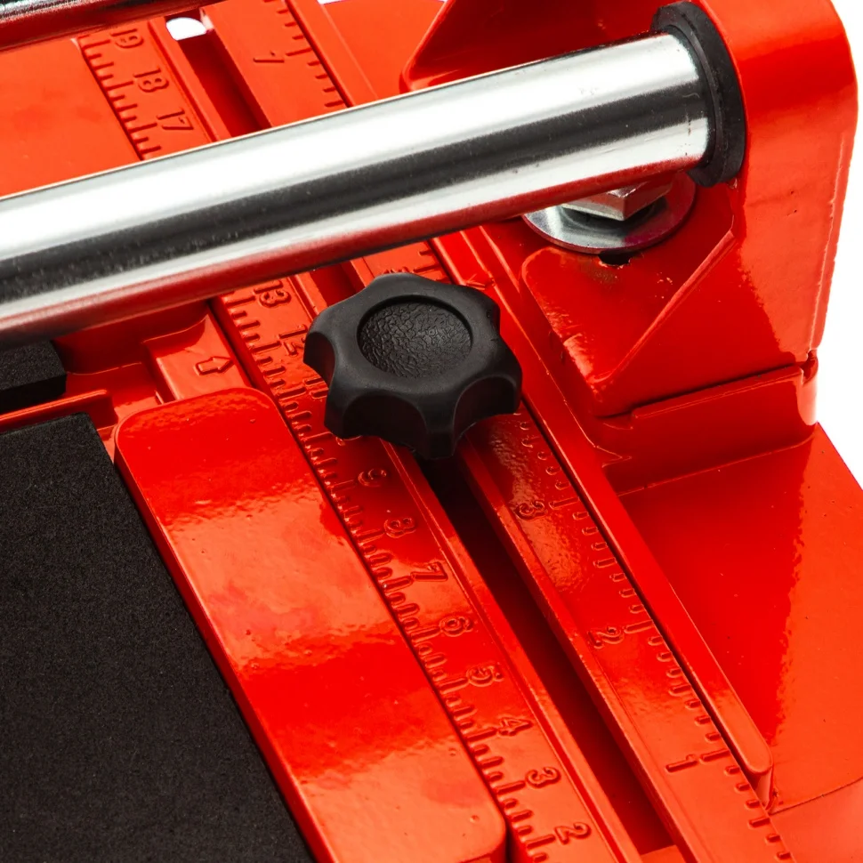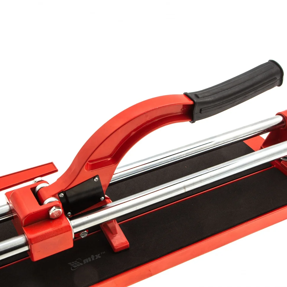 Плиткорез MTX 87605 с литой станиной, кареткой на подшипниках и усиленной рукояткой, используется для резки кафельной плитки размером до 400 х 16 мм. Ходовая каретка представляет собой массивный цельнолитой закрытый корпус, внутри которого размещаются цилиндрические шариковые подшипники, благодаря которым каретка перемещается по направляющим свободно даже при их загрязнении. Отсутствие люфтов в каретке позволяет выполнять рез максимально точно. Инструмент будет полезен мастерам в ходе бытовых облицовочных работ.ПреимуществаДолговечность и надежность — режущий ролик плиткореза выполнен из твердого сплава ВК-8.Защита от ударов — на конце направляющих имеются резиновые амортизаторы.Плавный и свободный ход — цельнолитая закрытая каретка снабжена шарикоподшипниковым механизмом, две трубчатых направляющих выполнены из хромированной стали с антикоррозионным покрытием, что обеспечивает свободных ход каретки по ним в процессе резки.Точность работы — в конструкции устройства имеется металлическая линейка-угольник.Устойчивое основание и неподвижность плитки — плиткорез снабжен цельнолитой станиной из алюминиево-магниевого сплава и мягкими амортизирующими накладками.Регулируемый боковой упор (он же линейка-угольник) — благодаря ему удобно осуществлять серийную резку.Надежный хват — рукоятка с обрезиненной накладкой не скользит в руке.