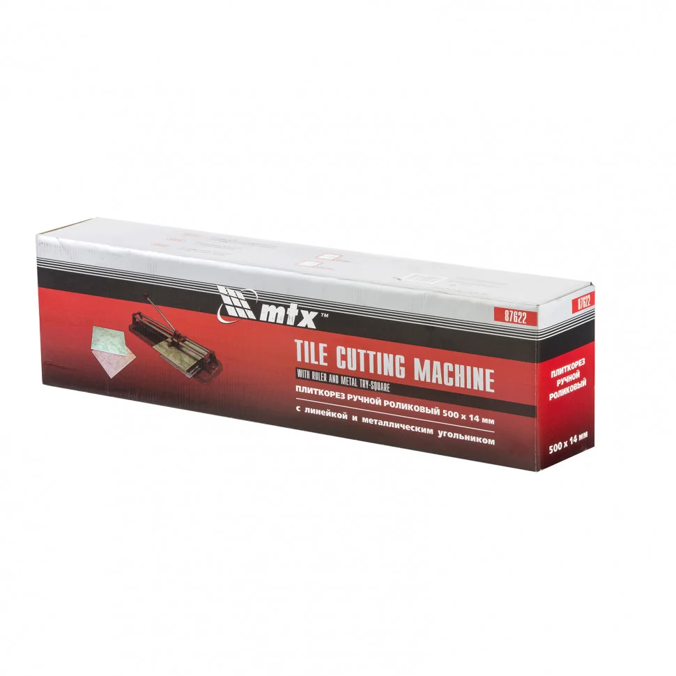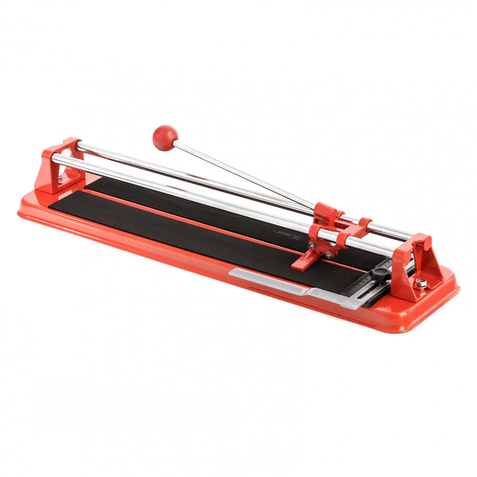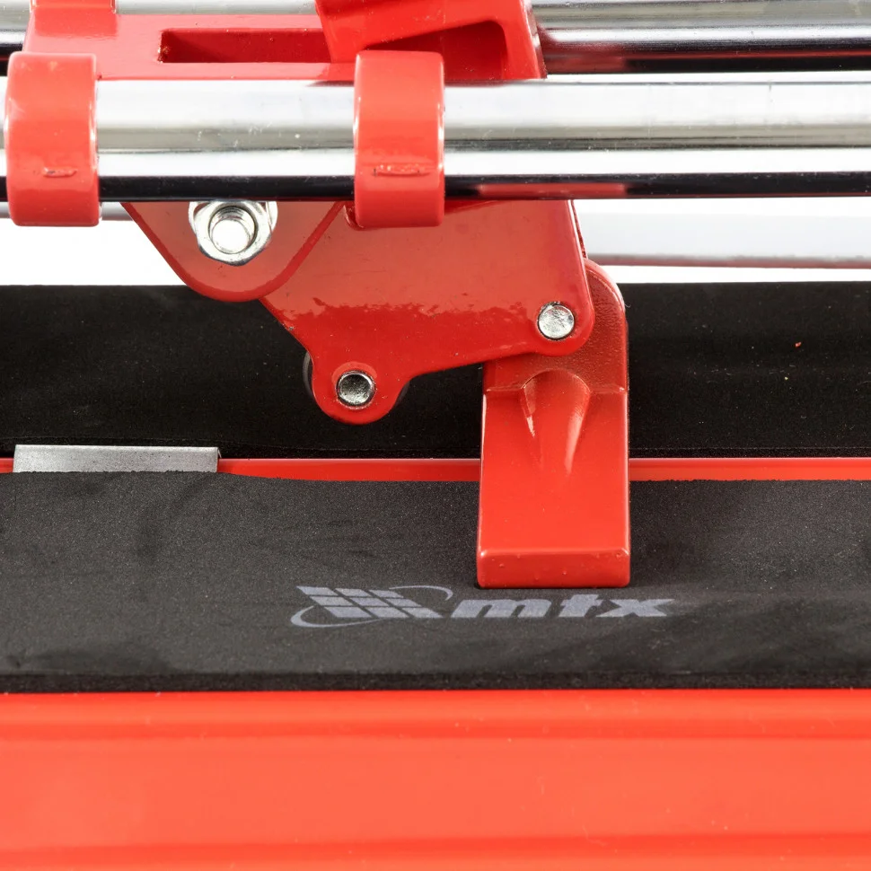 Плиткорез MTX 87622 — это инструмент для работы с керамической плиткой размером до 500 х 14 мм. Благодаря ему резка происходит быстро и легко, а срез получается ровным и аккуратным.ПреимуществаРежущий ролик обладает высокой износостойкостью и ресурсом за счет твердосплавного материала ВК-8, из которого выполнен.В основании плиткореза имеются отверстия для фиксации к поверхности и предотвращения смещения.В процессе резки каретка свободно передвигается благодаря двум направляющим из высококачественной инструментальной стали с антикоррозийным покрытием.Удобство и качество работы достигаются за счет стального основания с мягкими амортизирующими накладками, предотвращающими сдвиг плитки.Захват на рукоятке повышает комфорт использования.