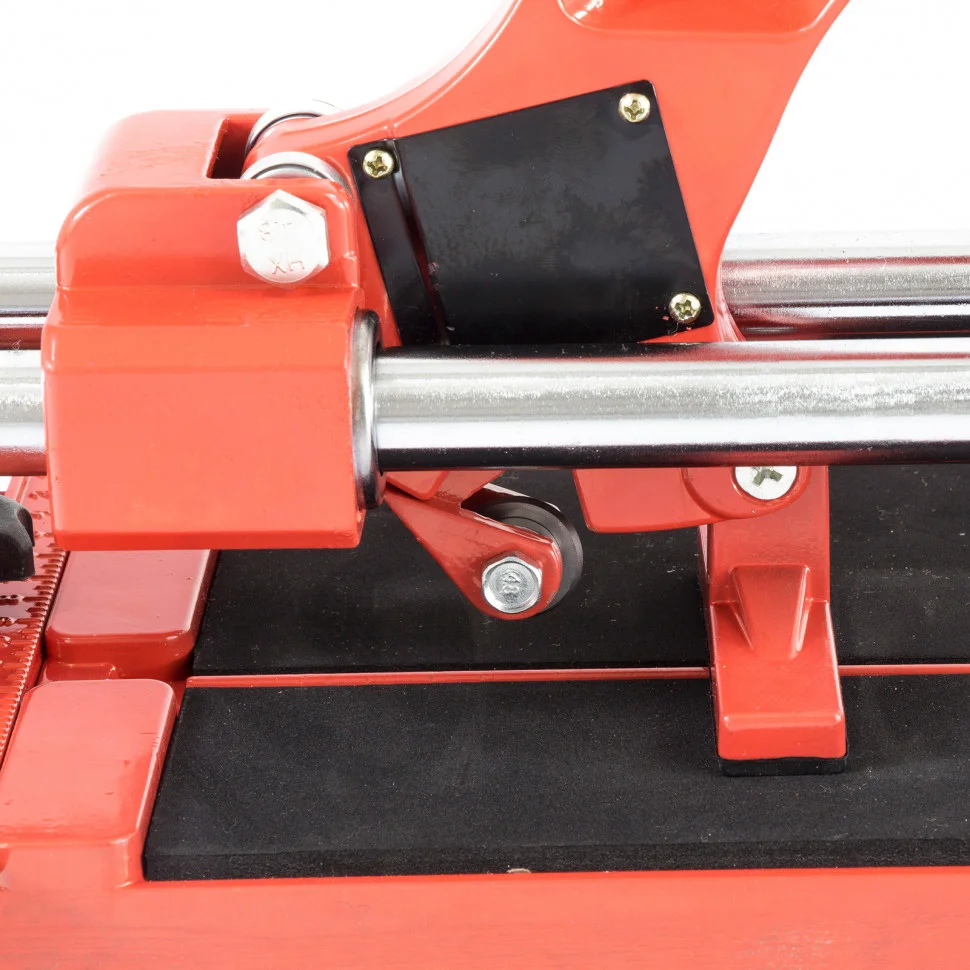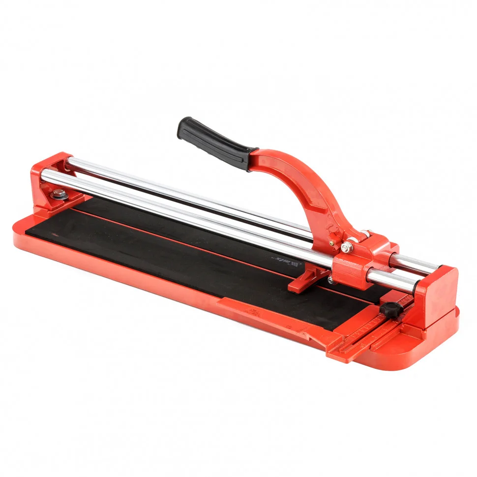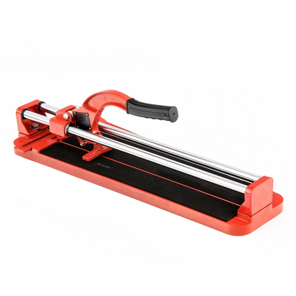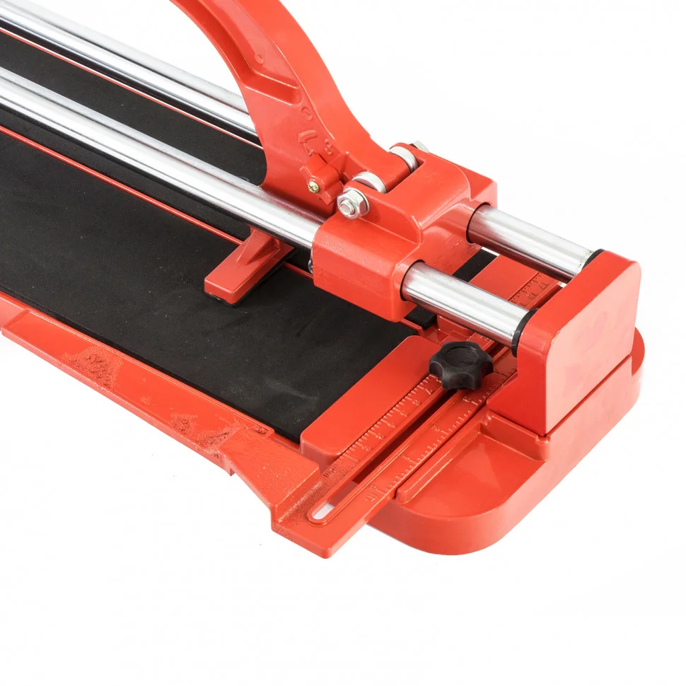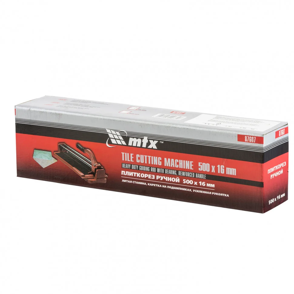 Плиткорез MTX 87607 с литой станиной, кареткой на подшипниках и усиленной рукояткой, используется для резки кафельной плитки размером до 500 х 16 мм. Ходовая каретка представляет собой массивный цельнолитой закрытый корпус, внутри которого размещаются цилиндрические шариковые подшипники, благодаря которым каретка перемещается по направляющим свободно даже при их загрязнении. Отсутствие люфтов в каретке позволяет выполнять рез максимально точно. Инструмент будет полезен мастерам в ходе бытовых облицовочных работ.ПреимуществаДолговечность и надежность — режущий ролик плиткореза выполнен из твердого сплава ВК-8.Защита от ударов — на конце направляющих имеются резиновые амортизаторы.Плавный и свободный ход — цельнолитая закрытая каретка снабжена шарикоподшипниковым механизмом, две трубчатых направляющих выполнены из хромированной стали с антикоррозионным покрытием, что обеспечивает свободных ход каретки по ним в процессе резки.Точность работы — в конструкции устройства имеется металлическая линейка-угольник.Устойчивое основание и неподвижность плитки — плиткорез снабжен цельнолитой станиной из алюминиево-магниевого сплава и мягкими амортизирующими накладками.Регулируемый боковой упор (он же линейка-угольник) — благодаря ему удобно осуществлять серийную резку.Надежный хват — рукоятка с обрезиненной накладкой не скользит в руке.