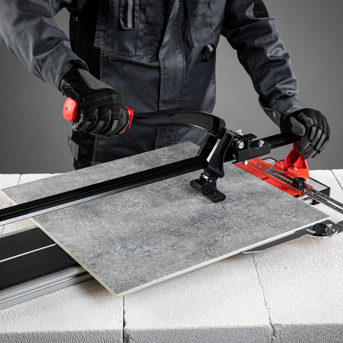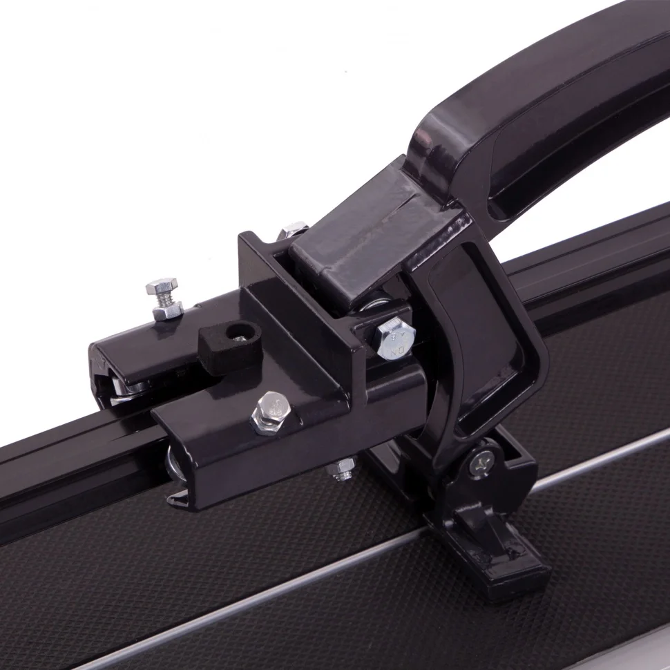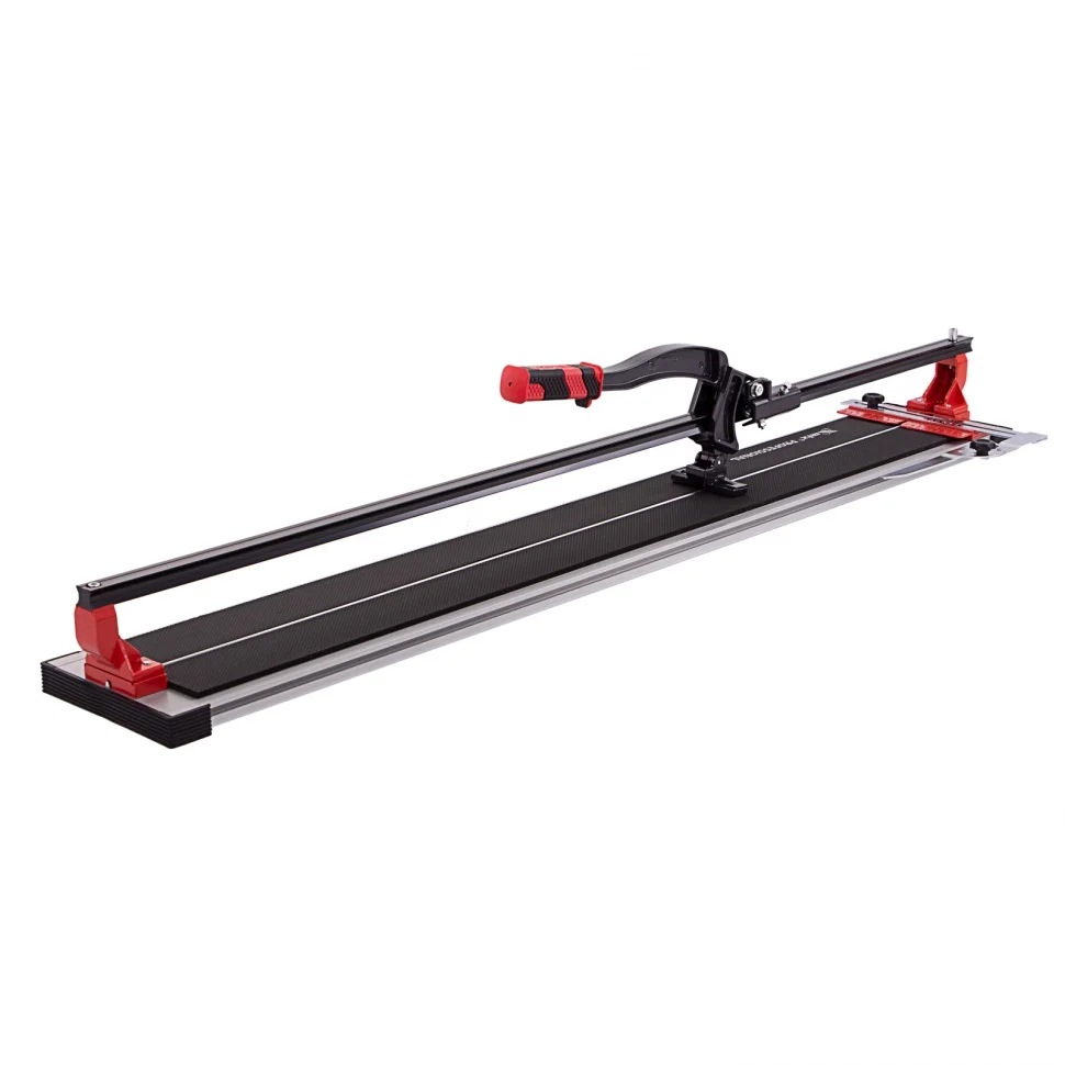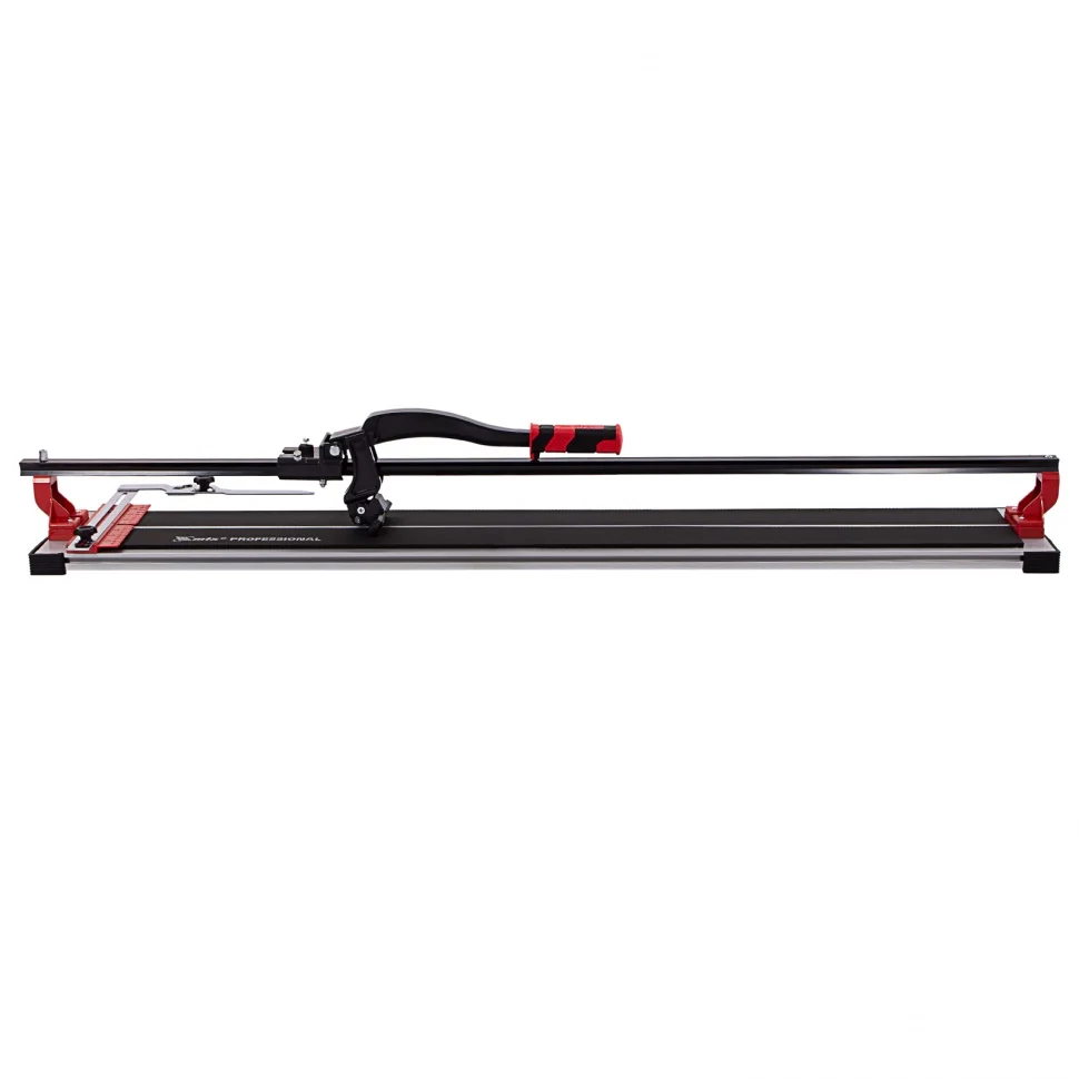 Рельсовый плиткорез MTX 87693 поможет придать необходимый размер плитке длиной до 1200 мм и толщиной до 16 мм. Пригодится в ходе проведения облицовочных работ. Мощный разделитель справится с резкой любого типа плитки, включая керамическую и керамогранитную. Благодаря продуманной конструкции плиткореза можно производить разлом в любой точке поверхности плитки.ПреимуществаПовышенная износостойкость — сменный режущий ролик из твердого сплава ВК-8 рассчитан на долгий срок службы.Плавный и легкий ход — в конструкции использован качественный направляющий рельс из стального сплава с антикоррозийным покрытием и надежный шарикоподшипниковый механизм.Поворотный угольник-угломер — плитка режется под углом до 45 градусов, размер заготовки удобно регулируется и можно дополнительно фиксировать ее.Полное отсутствие люфта между кареткой и рельсом и максимальная устойчивость рукоятки при резке — прижимной обхват рельса каретки регулируется специальным болтами.Надежный захват — удобная обрезиненная рукоятка исключает скольжение руки при выполнении работ.Мобильность — станина из алюминиевого сплава не утяжеляет конструкцию инструмента, поэтому его удобно транспортировать.