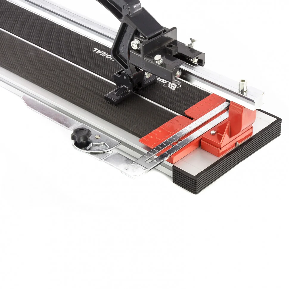Рельсовый плиткорез MTX 87691 поможет придать необходимый размер плитке длиной до 900 мм и толщиной до 16 мм. Пригодится в ходе проведения облицовочных работ. Мощный разделитель справится с резкой любого типа плитки, включая керамическую и керамогранитную. Благодаря продуманной конструкции плиткореза можно производить разлом в любой точке поверхности плитки.ПреимуществаПовышенная износостойкость — сменный режущий ролик из твердого сплава ВК-8 рассчитан на долгий срок службы.Плавный и легкий ход — в конструкции использован качественный направляющий рельс из стального сплава с антикоррозийным покрытием и надежный шарикоподшипниковый механизм.Поворотный угольник-угломер — плитка режется под углом до 45 градусов, размер заготовки удобно регулируется и можно дополнительно фиксировать ее.Полное отсутствие люфта между кареткой и рельсом и максимальная устойчивость рукоятки при резке — прижимной обхват рельса каретки регулируется специальным болтами.Надежный захват — удобная обрезиненная рукоятка исключает скольжение руки при выполнении работ.Мобильность — станина из алюминиевого сплава не утяжеляет конструкцию инструмента, поэтому его удобно транспортировать.