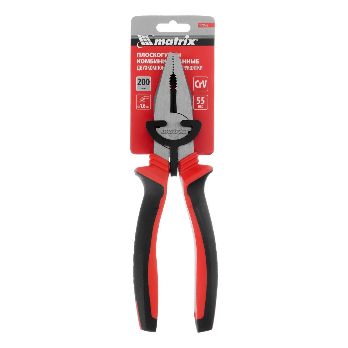 Плоскогубцы комбинированные, 200 мм, хром-ванадий, двухкомпонентные рукоятки Matrix 17092