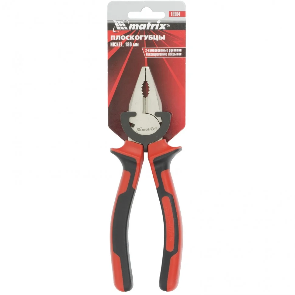 Плоскогубцы Nickel, 180 мм, никелированные, двухкомпонентные рукоятки Matrix 16904