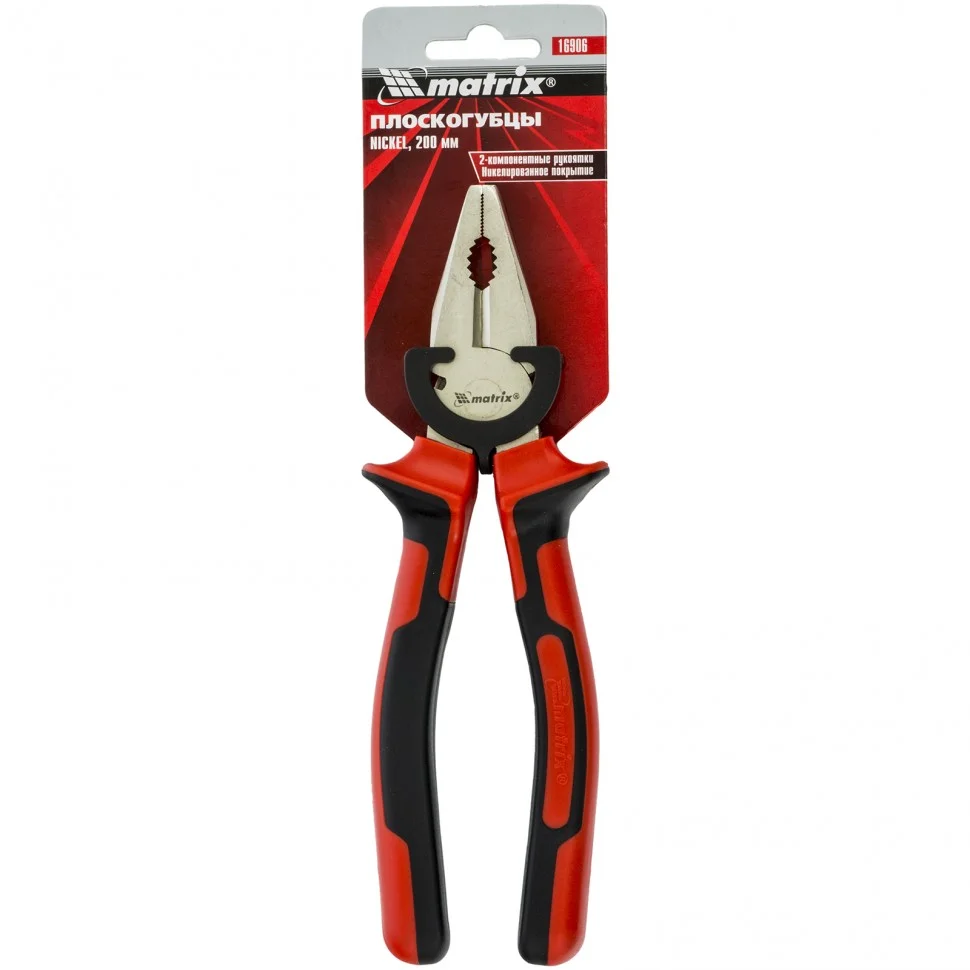 Плоскогубцы Nickel, никелированные 200 мм, двухкомпонентные рукоятки Matrix 16906