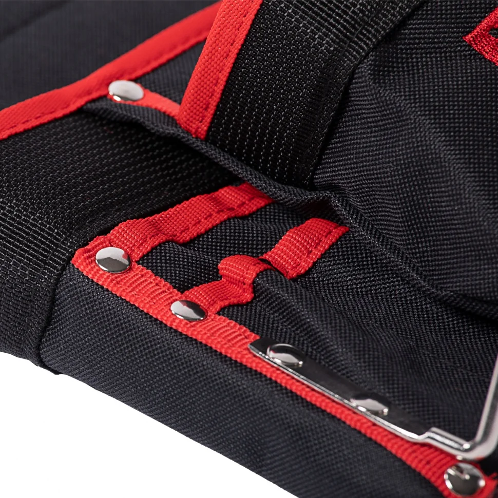 Поясной подсумок Matrix 90242 с 8 карманами и держателями для молотка и клещей используют для переноски инструментов. Крепится на ремень и позволяет иметь под рукой все необходимые приспособления, что особенно важно во время работы на высоте. Будет полезен для проведения монтажных, ремонтных и отделочных работ.ПреимуществаПодсумок изготовлен из плотного синтетического материала и обладает высокой износостойкостью.В 8 карманах разного размера можно разместить отвертки, шарнирно-губцевый и другой инструмент, а также детали и крепежи.Металлические держатели для молотка и клещей закреплены снаружи подсумка, что обеспечивает быстрый доступ к ним.