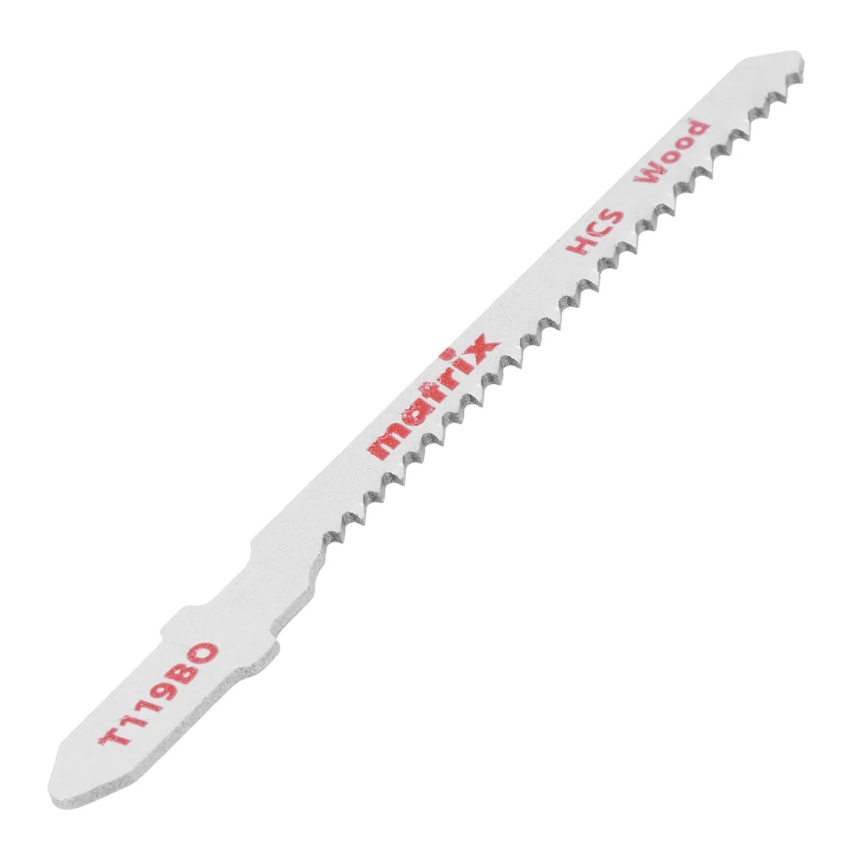 Полотна по дереву Matrix 78227, T119BO, 50 х 2 мм, из стали HCS, — предназначенных для фигурного реза древесины, ДСП, фанеры и пластика толщиной 2-15 мм. Пилки совместимы с большинством современных электролобзиков, оснащенных зажимами под Т-образный хвостовик. Пригодятся для столярных работ и занятий творчеством.