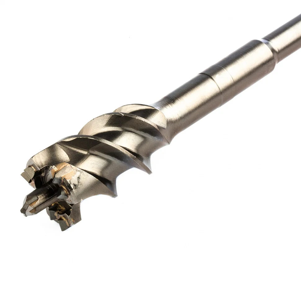 Проломной бур Matrix 712459 SDS MAX позволяет получать сквозные отверстия диаметром 4,5 см и длиной 100 см в стенах из кирпича и бетона, полах, перекрытиях. Применяется совместно с высокомощными перфораторами SDS Max. Он оптимально подходит для прокладки газо- и водопровода, электрических коммуникаций, магистралей кондиционеров.ПреимуществаРежущая пластина изготовлена из сверхтвердого сплава ВК8 80-90 HRC с добавлением кобальта, поэтому выдерживает высокие нагрузки и продлевает срок службы бура.Особая конструкция головки позволяет буру проходить армированный бетон без риска деформации.Радиальное и торцевое биение в процессе работы минимизируются за счет цельной конструкции бура, поэтому исключается отклонение бура от заданной оси.Тело бура изготовлено из легированной стали 40Х, благодаря чему инструмент не ржавеет и не ломается.Глубокие спиральные канавки эффективно отводят шлам, обеспечивая высокую скорость работы независимо от глубины сверления.